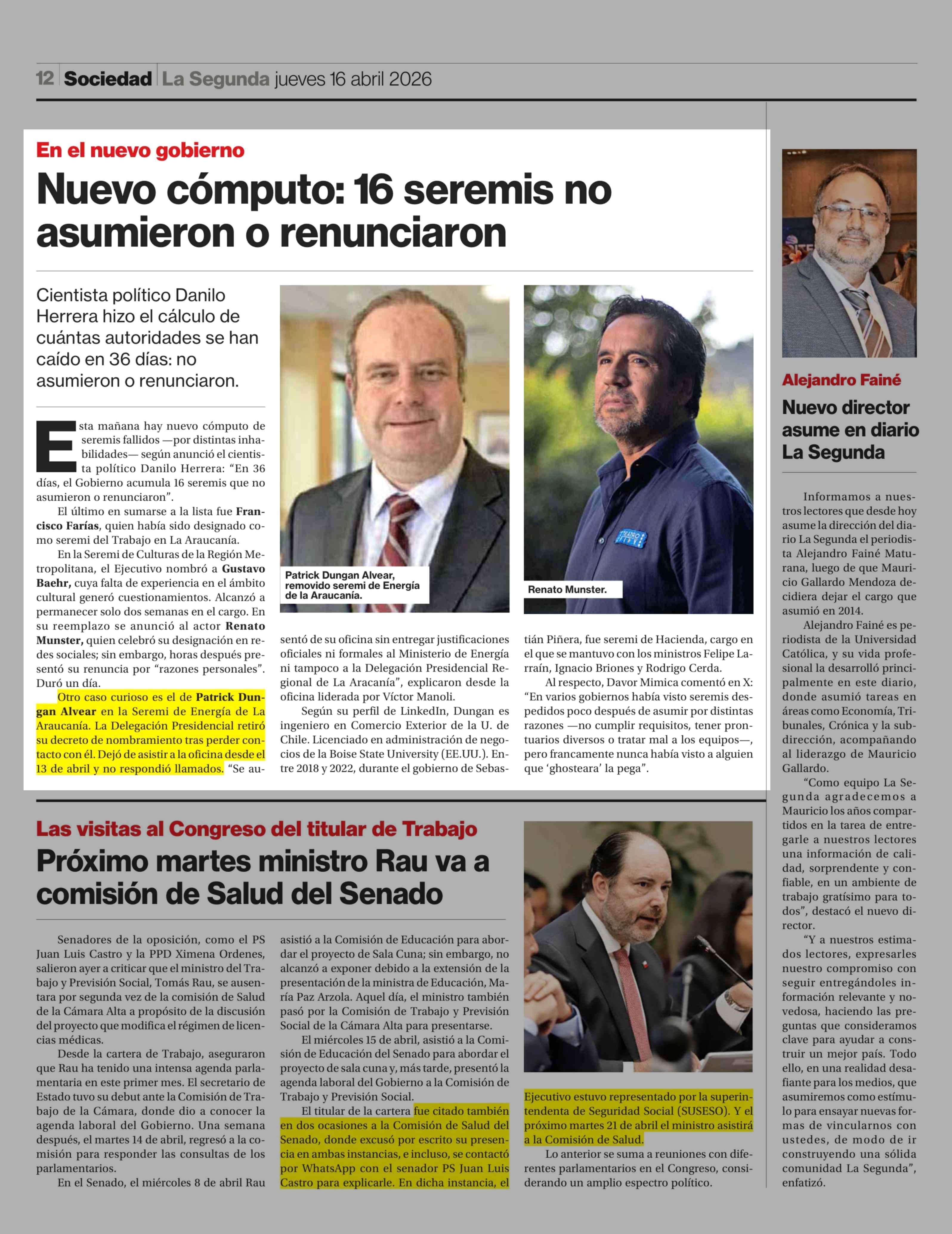 Título: Nuevo cómputo: 16 seremis no asumieron o renunciaron