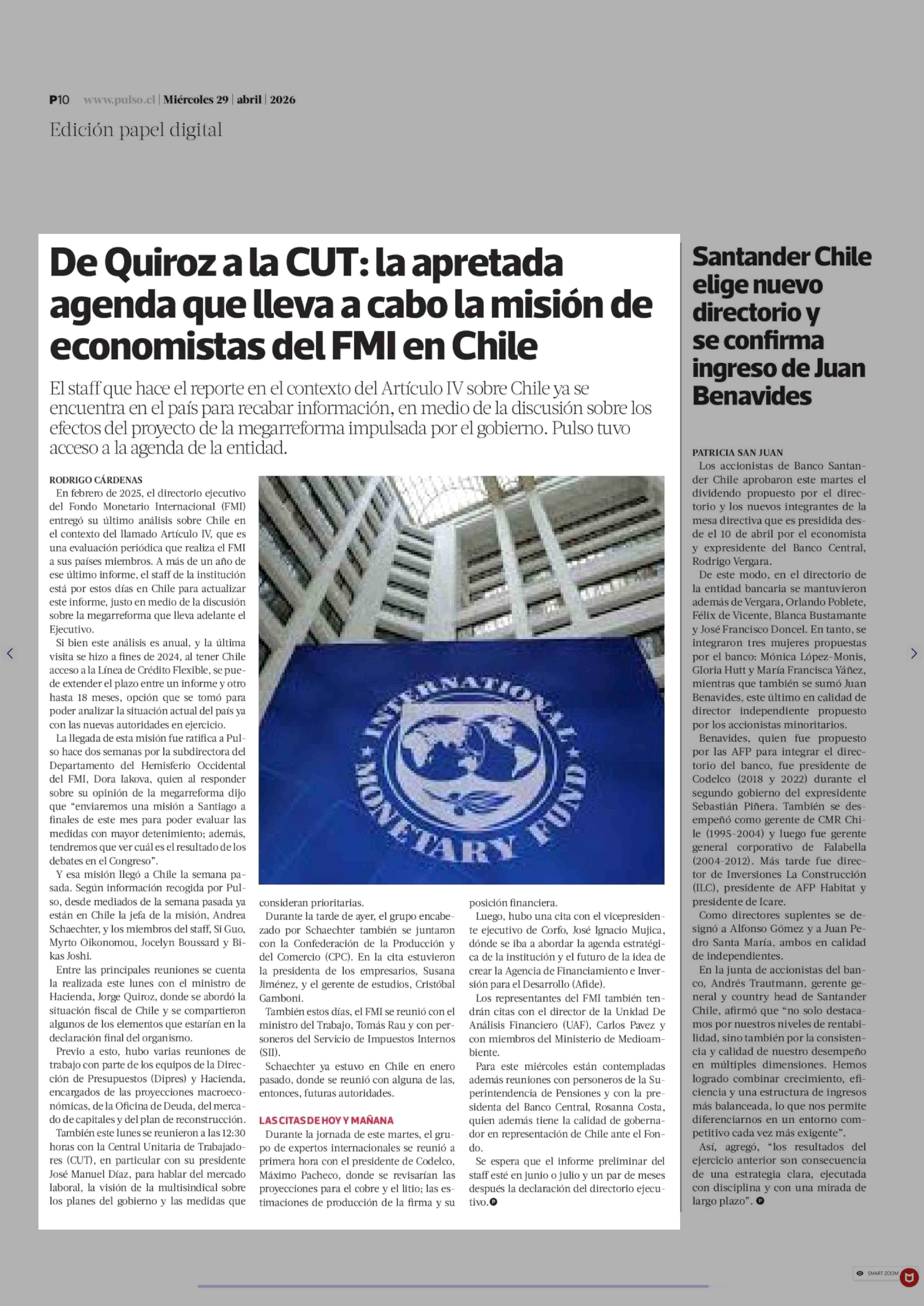 Título: De Quiroz a la CUT: la apretada agenda que lleva a cabo la misión de economistas del FMI en Chile
