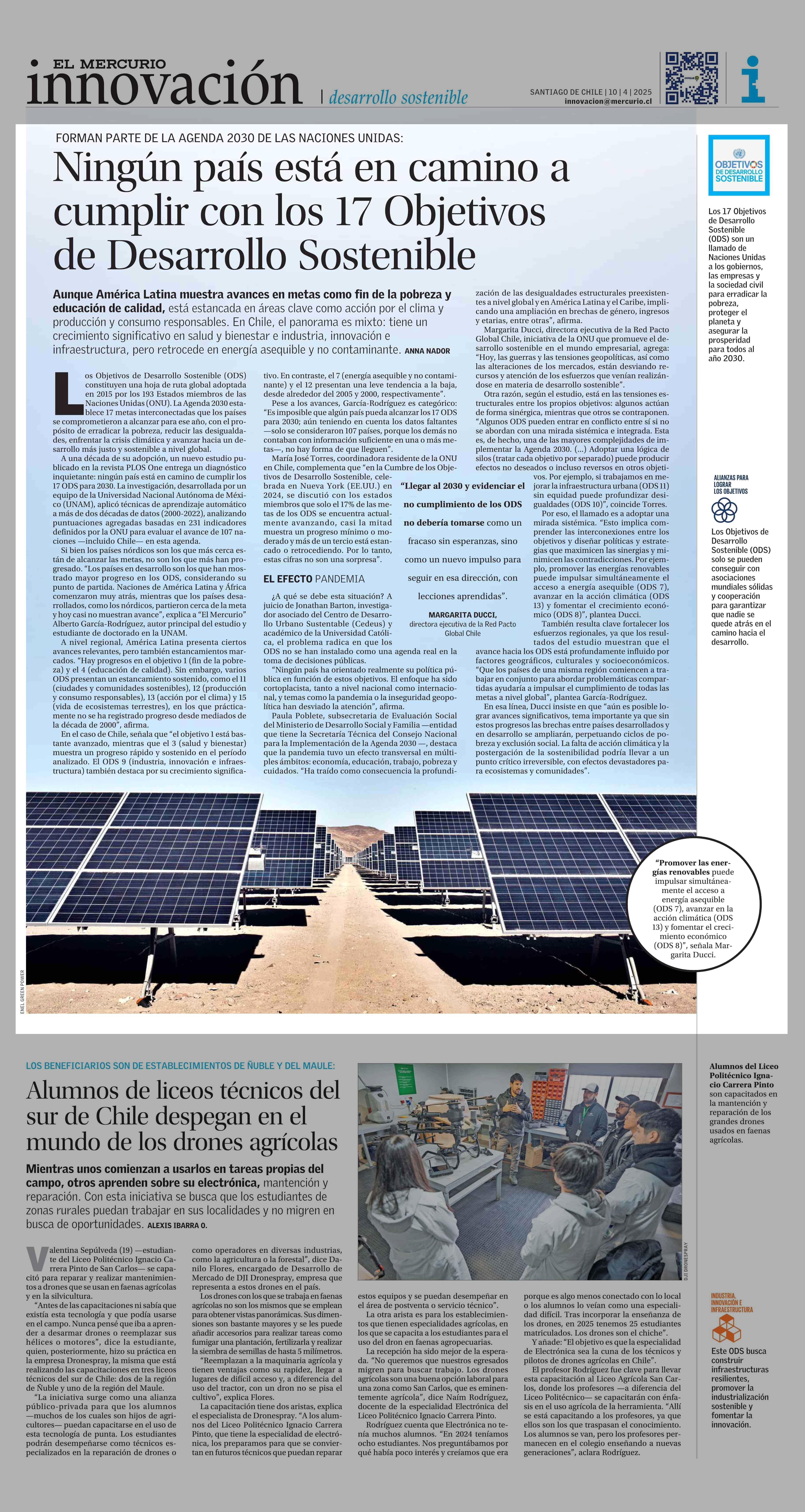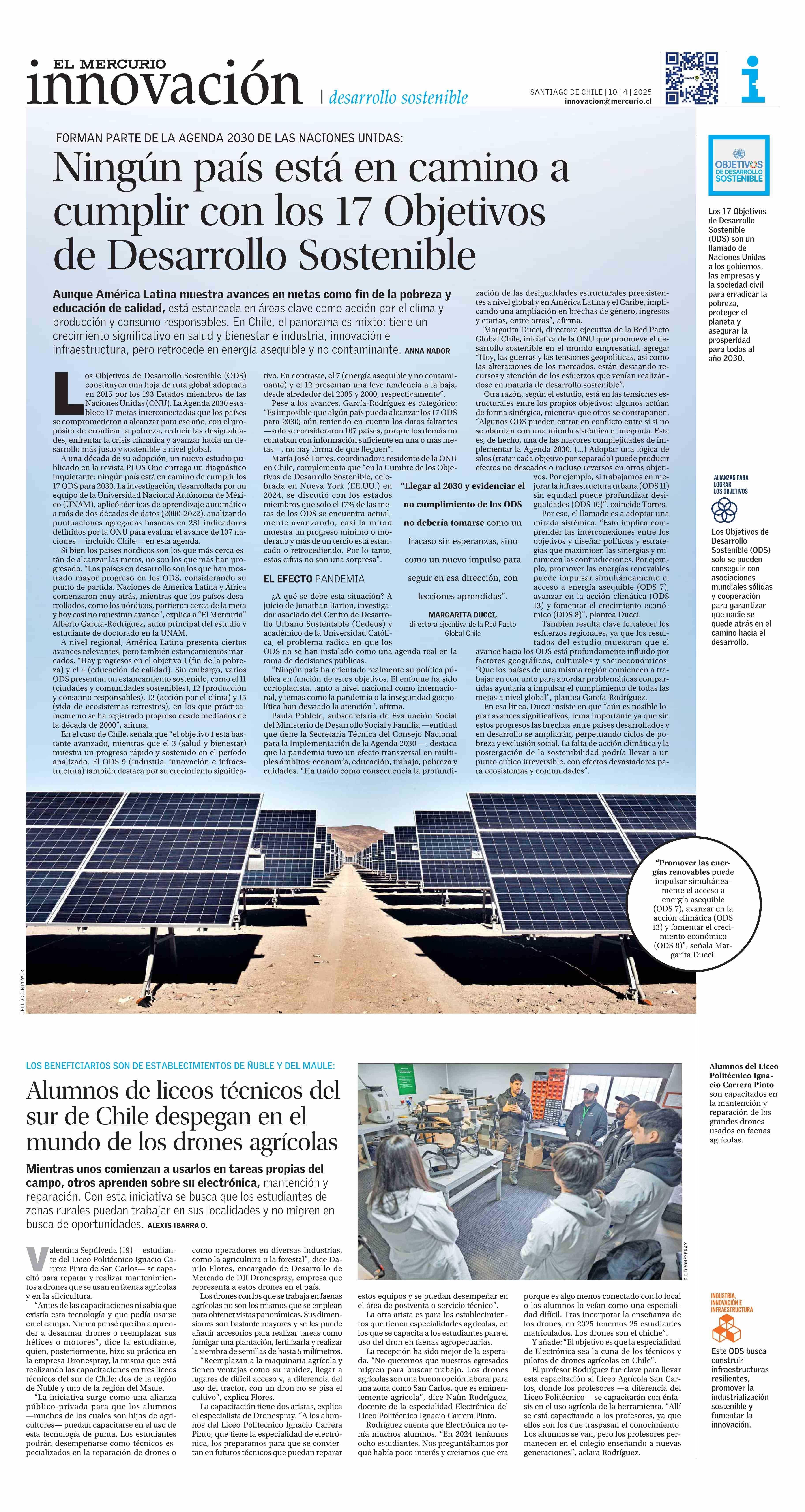 Ningún país está en camino a cumplir con los 17 Objetivos de Desarrollo Sostenible 10-04-2025 El Mercurio |