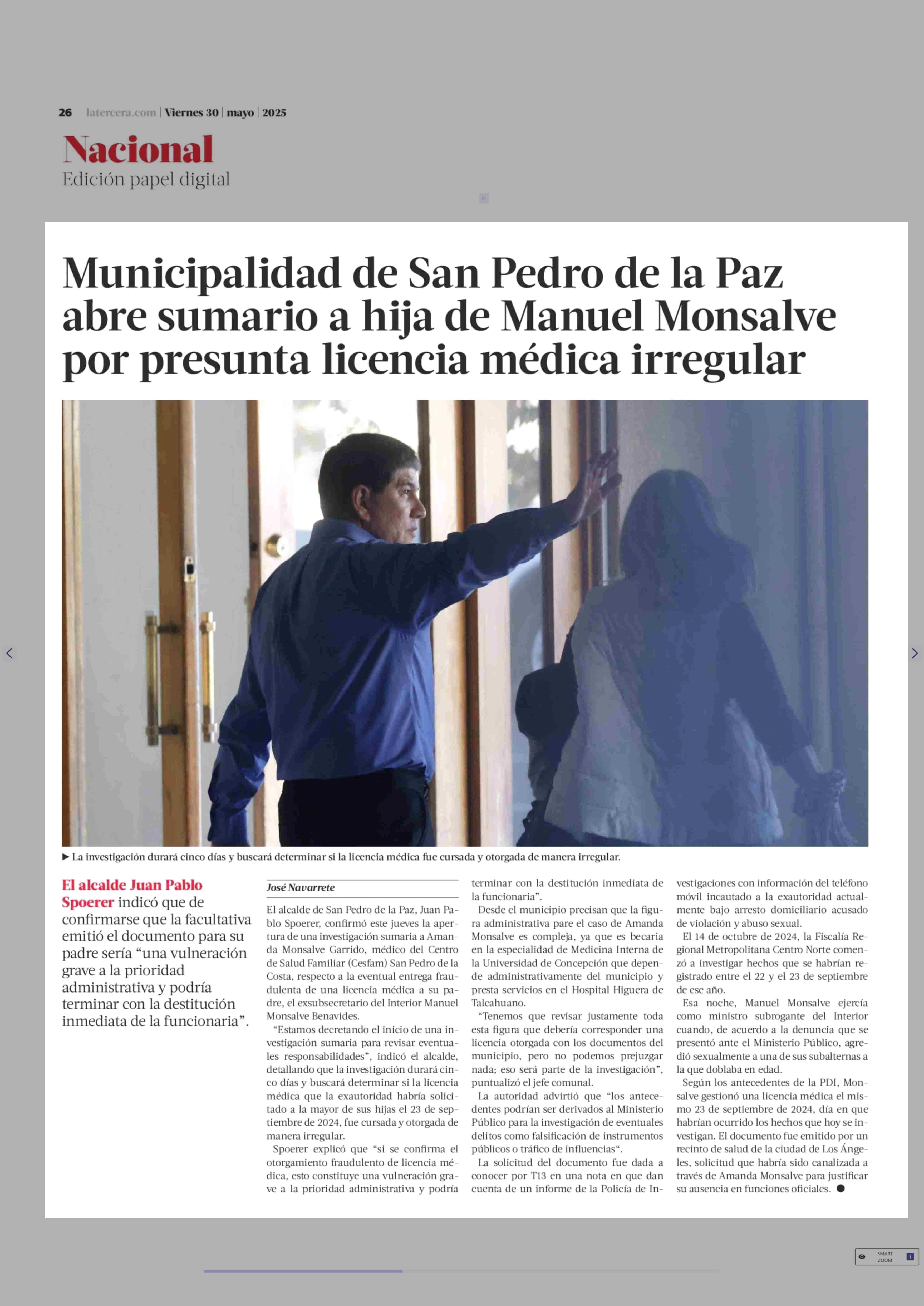 Título: Municipalidad de San Pedro de la Paz abre sumario a hija de Manuel Monsalve por presunta licencia médica irregular
