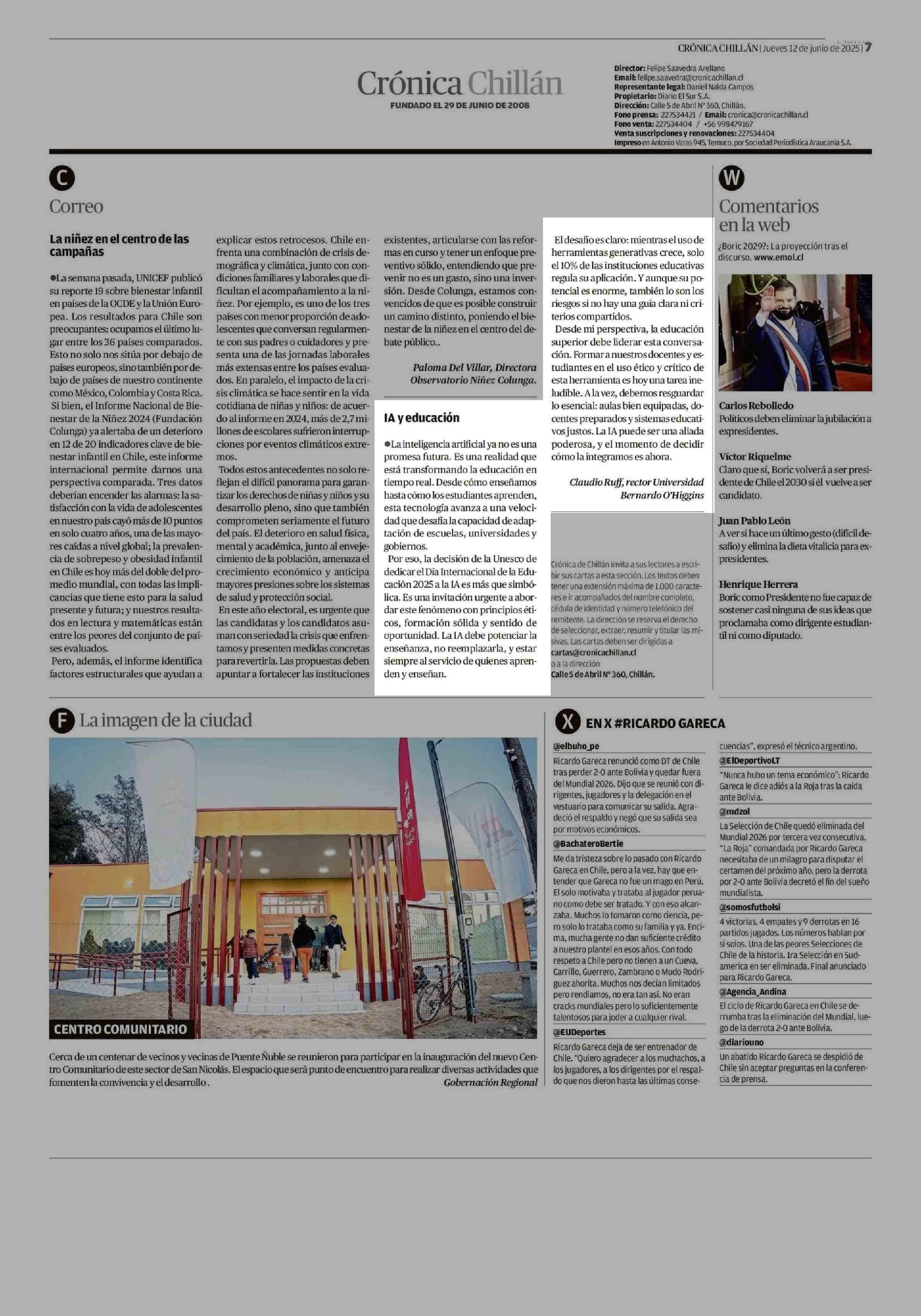 CARTAS: lA y educación 12-06-2025 Crónica de Chillán |