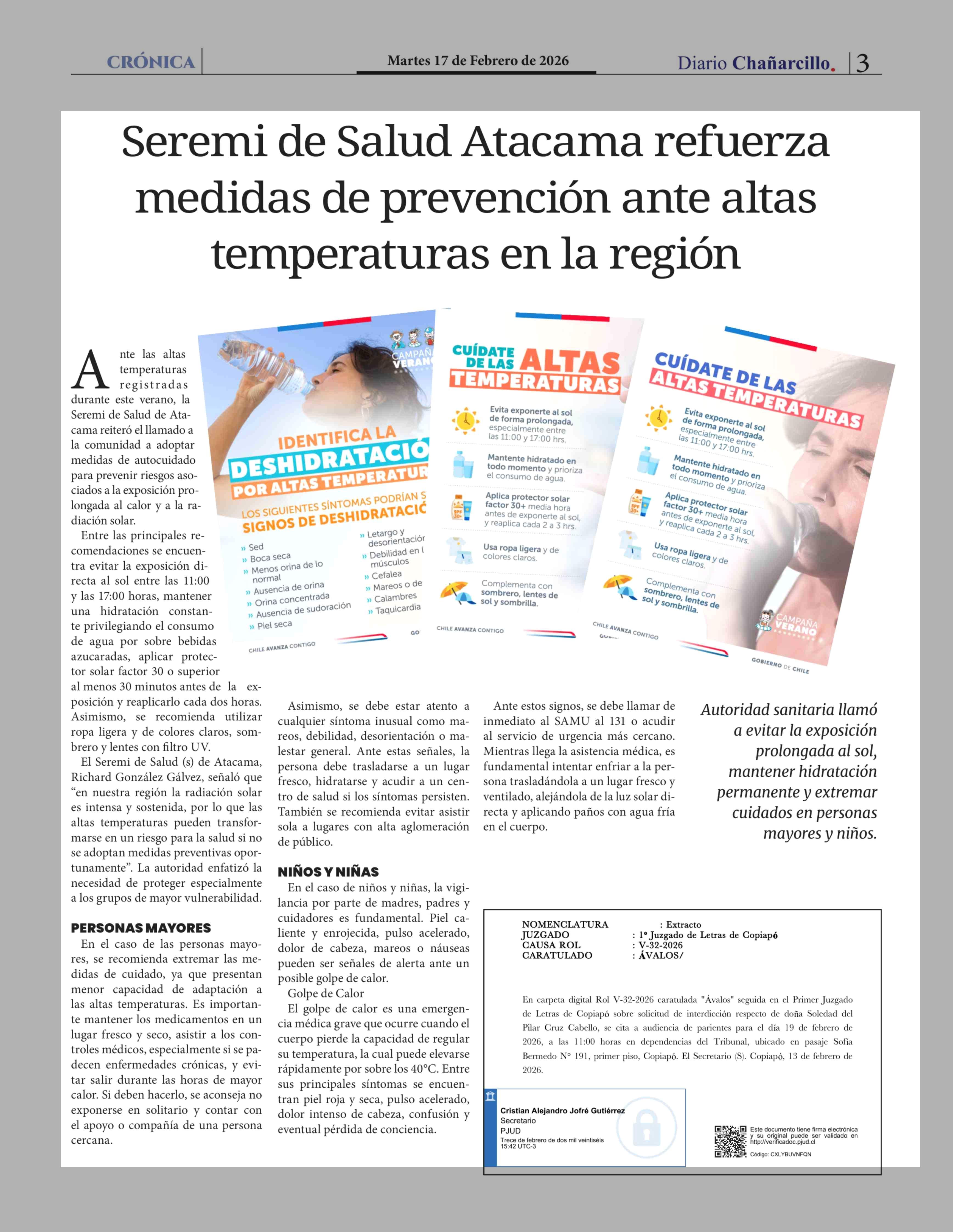 Seremi de Salud Atacama refuerza medidas de prevención ante altas temperaturas en la región 17-02-2026 Diario Chañarcillo |