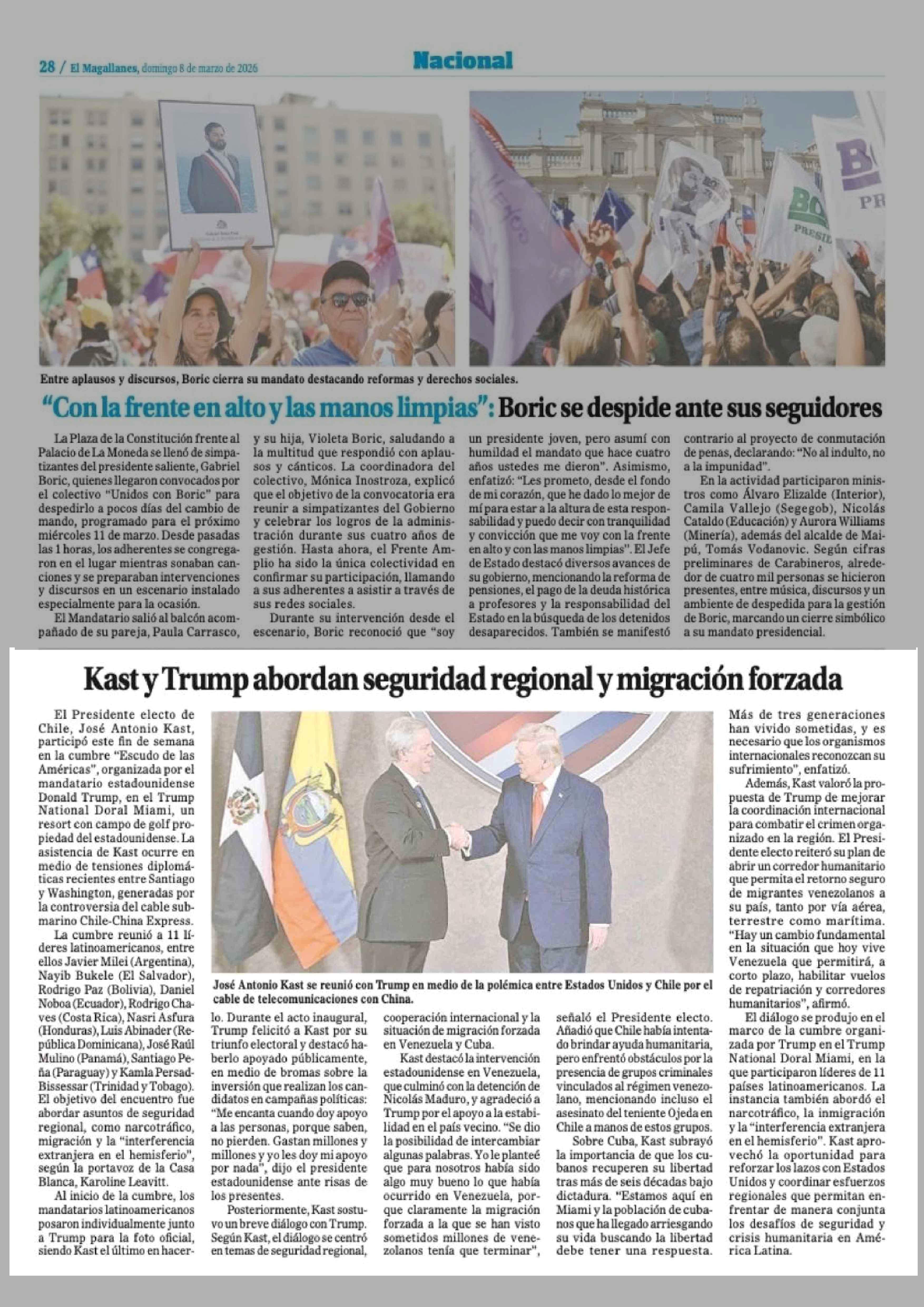 Kast y Trump abordan seguridad regional y migración forzada 08-03-2026 El Magallanes |
