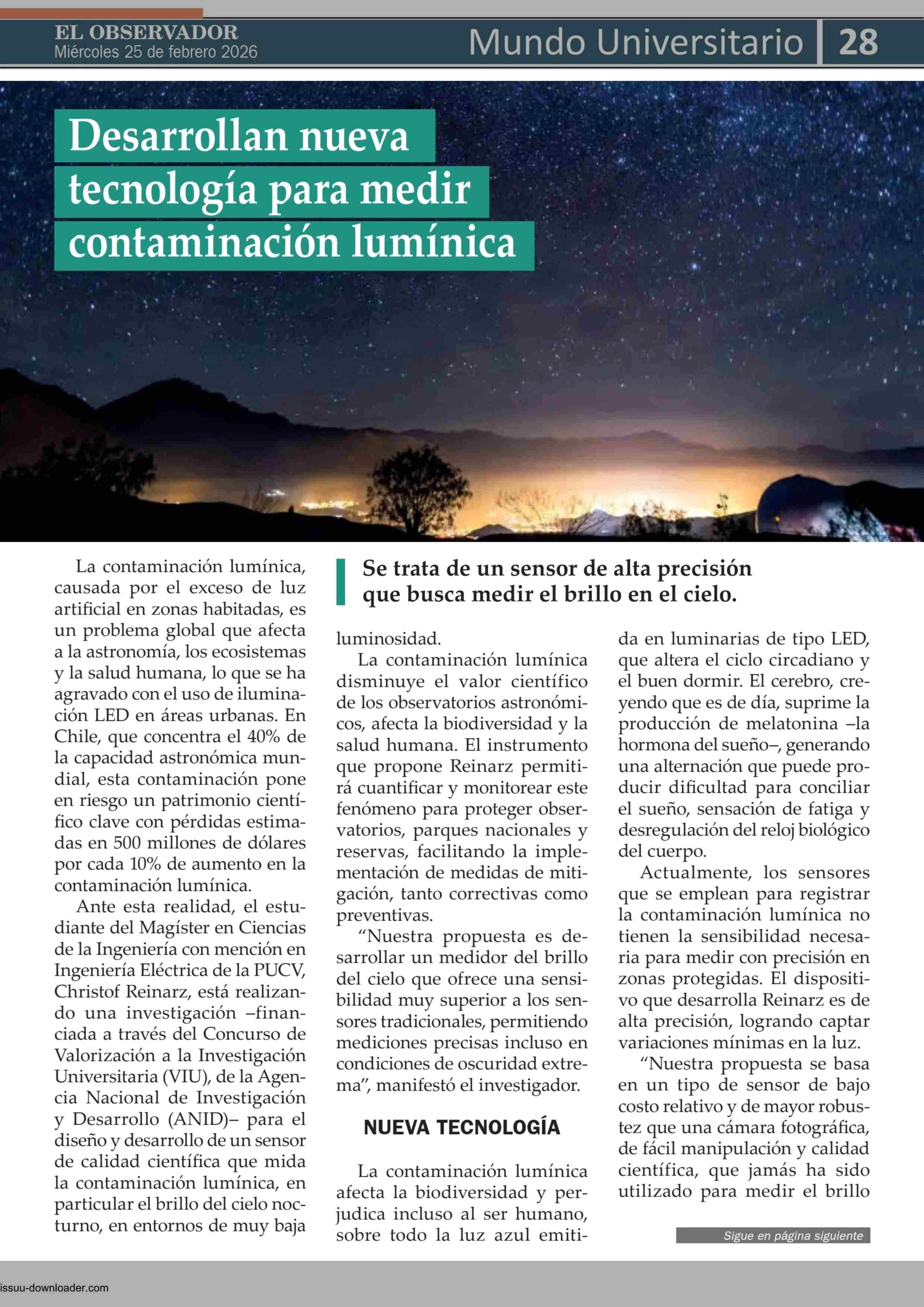 Desarrollan nueva tecnología para medir contaminación lumínica 25-02-2026 El Observador Vespertino |