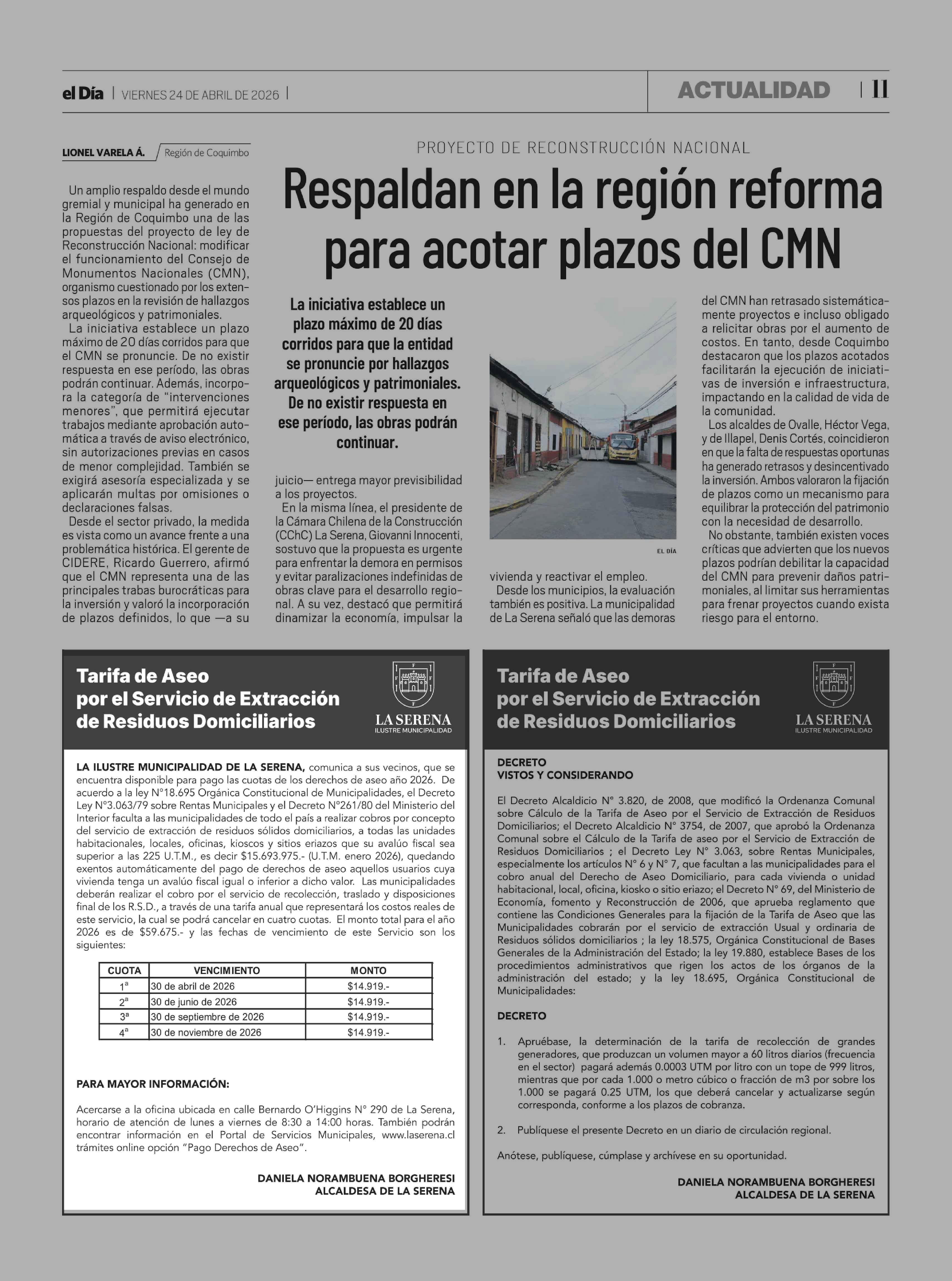 | Fecha: | 24-04-2026 | Sector: | Extractos | Región: | Región de Coquimbo |
