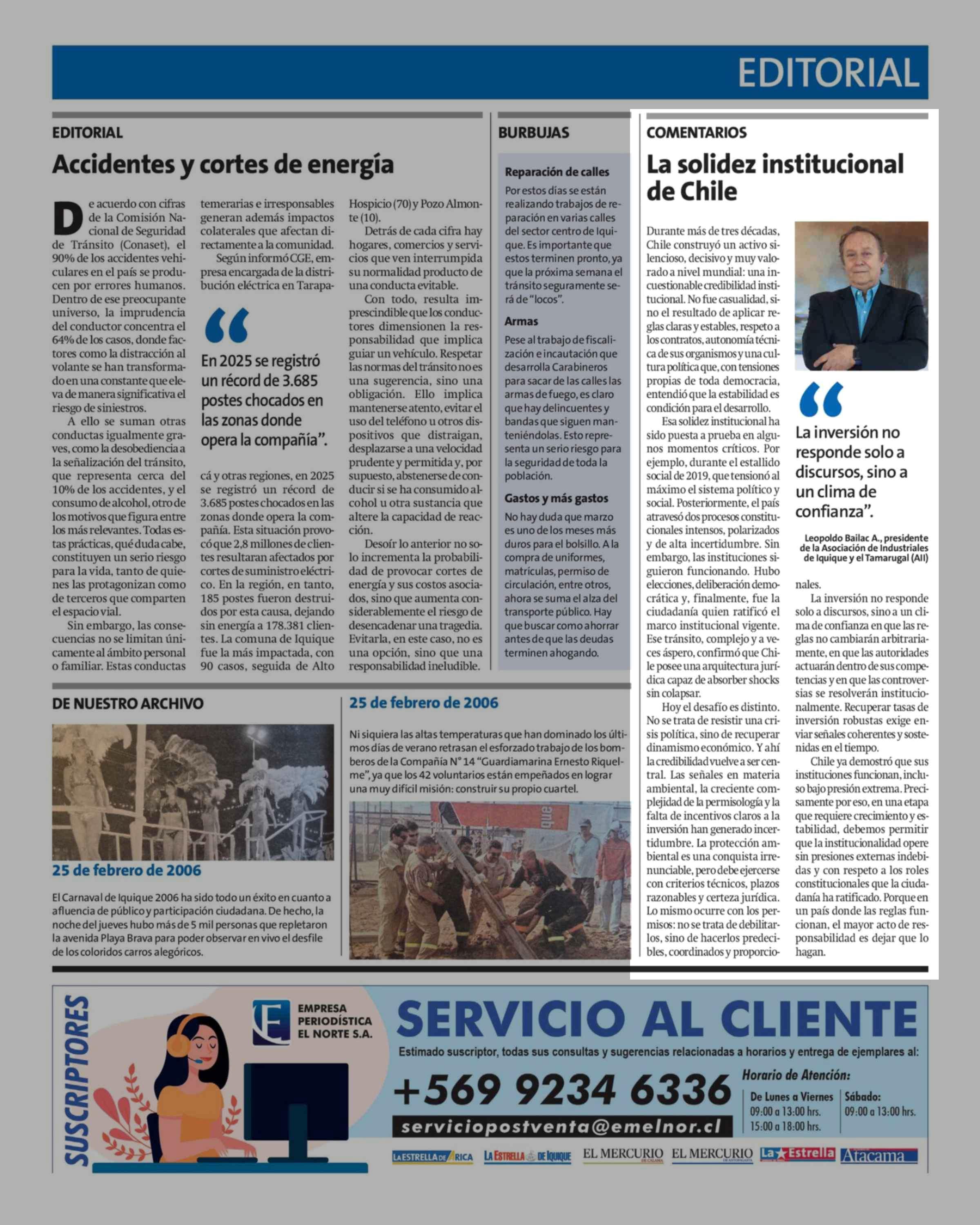 Fecha: 25-02-2026 Sector: Columnas de Opinión Región: Región de Tarapacá