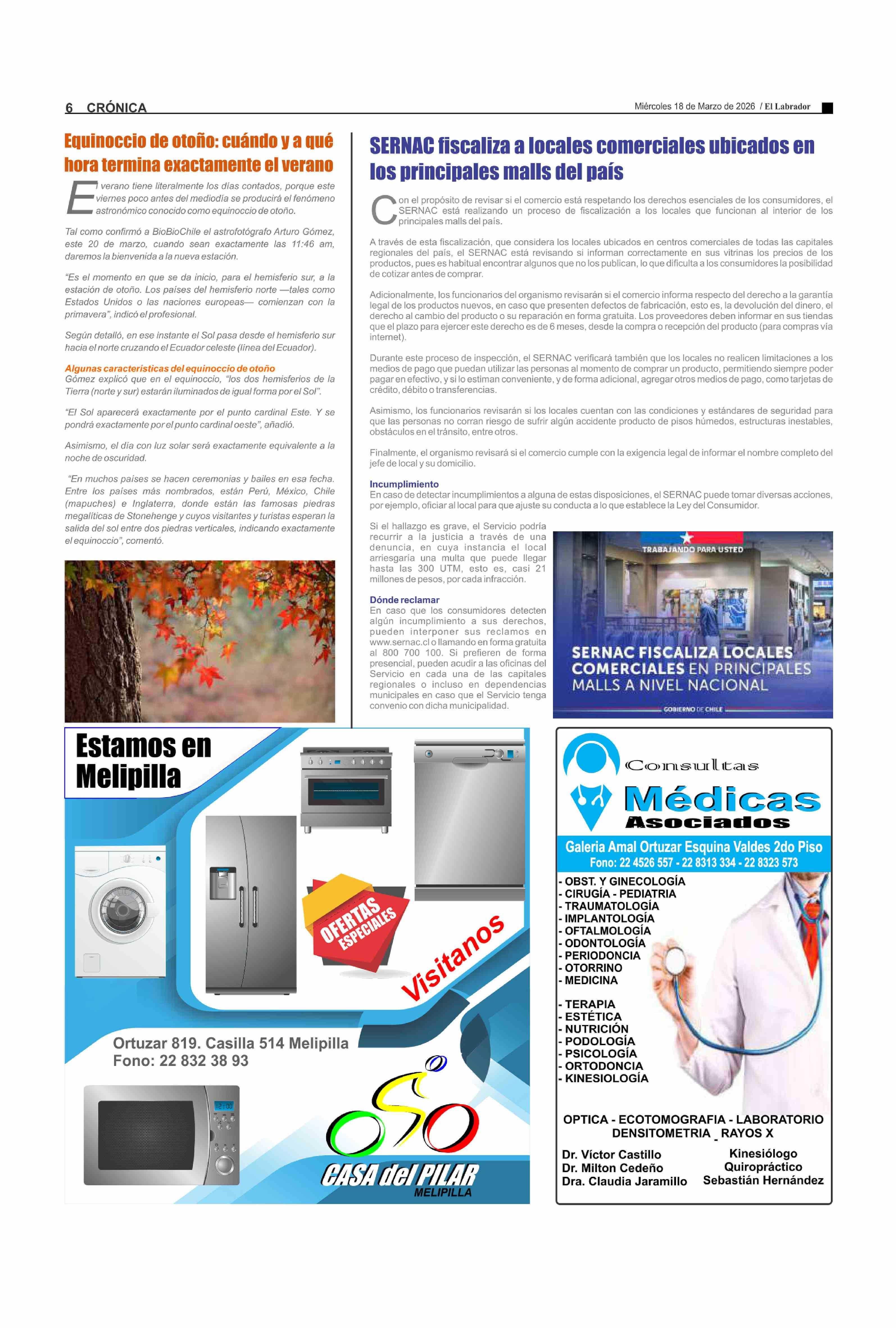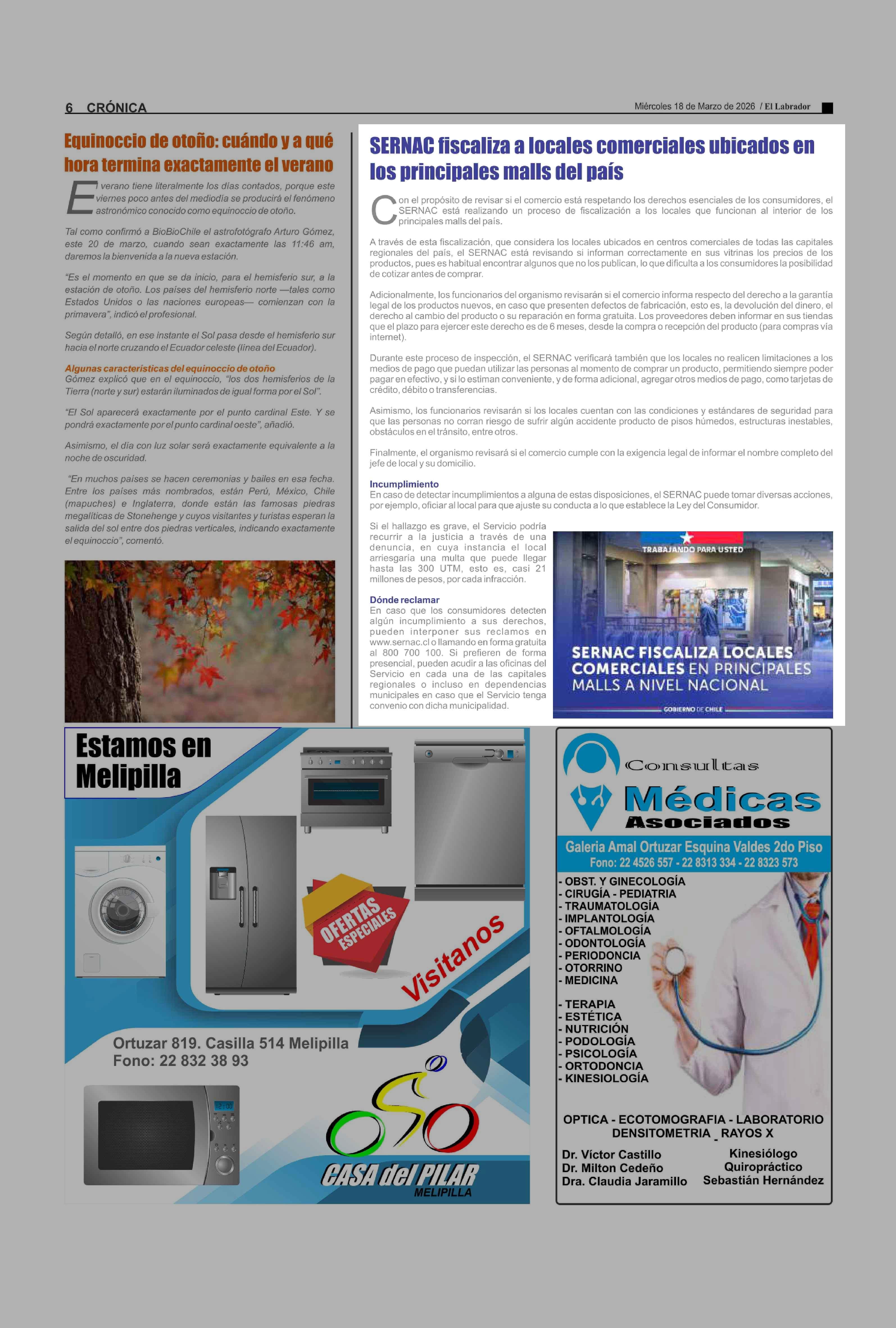 SERNAC fiscaliza a locales comerciales ubicados en los principales malls del país 18-03-2026 El Labrador |