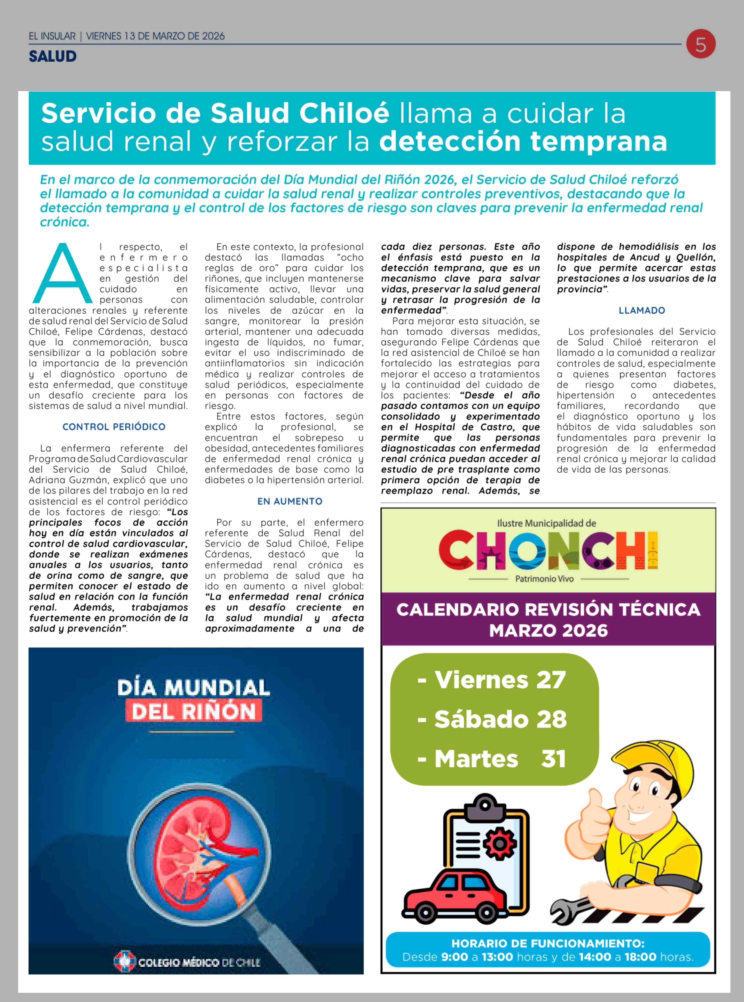 Título: Servicio de Salud Chiloé llama a cuidar la salud renal y reforzar la detección temprana