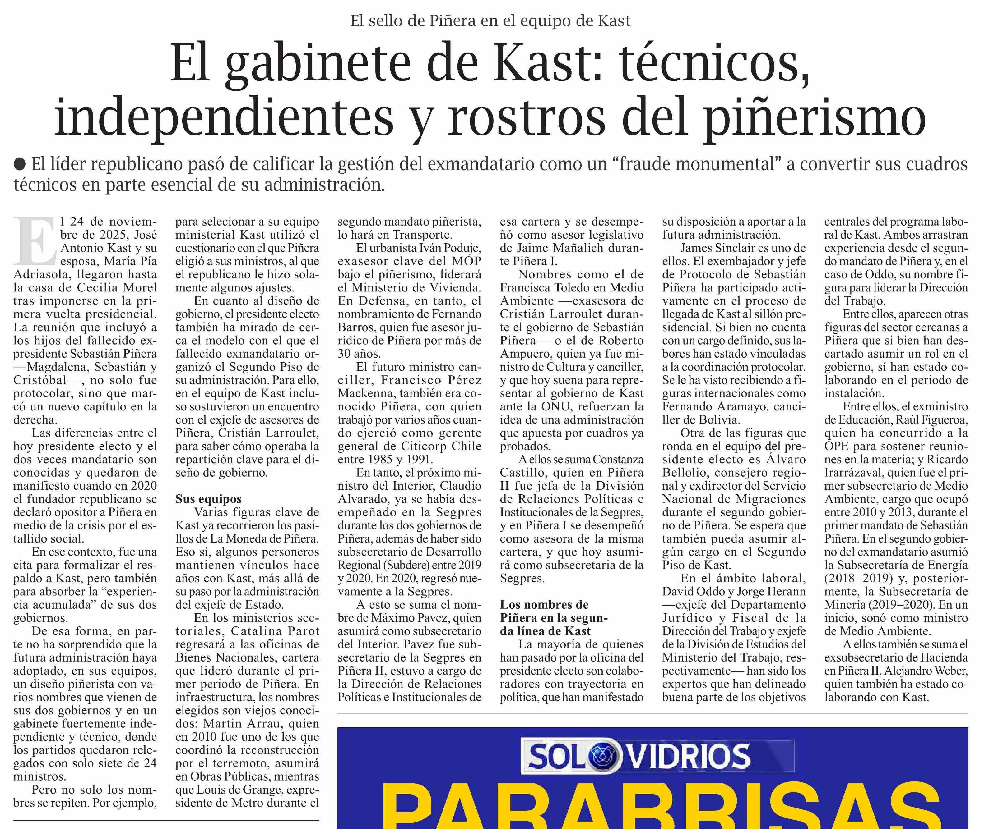 | Título: | El gabinete de Kast: técnicos, independientes y rostros del piñerismo |