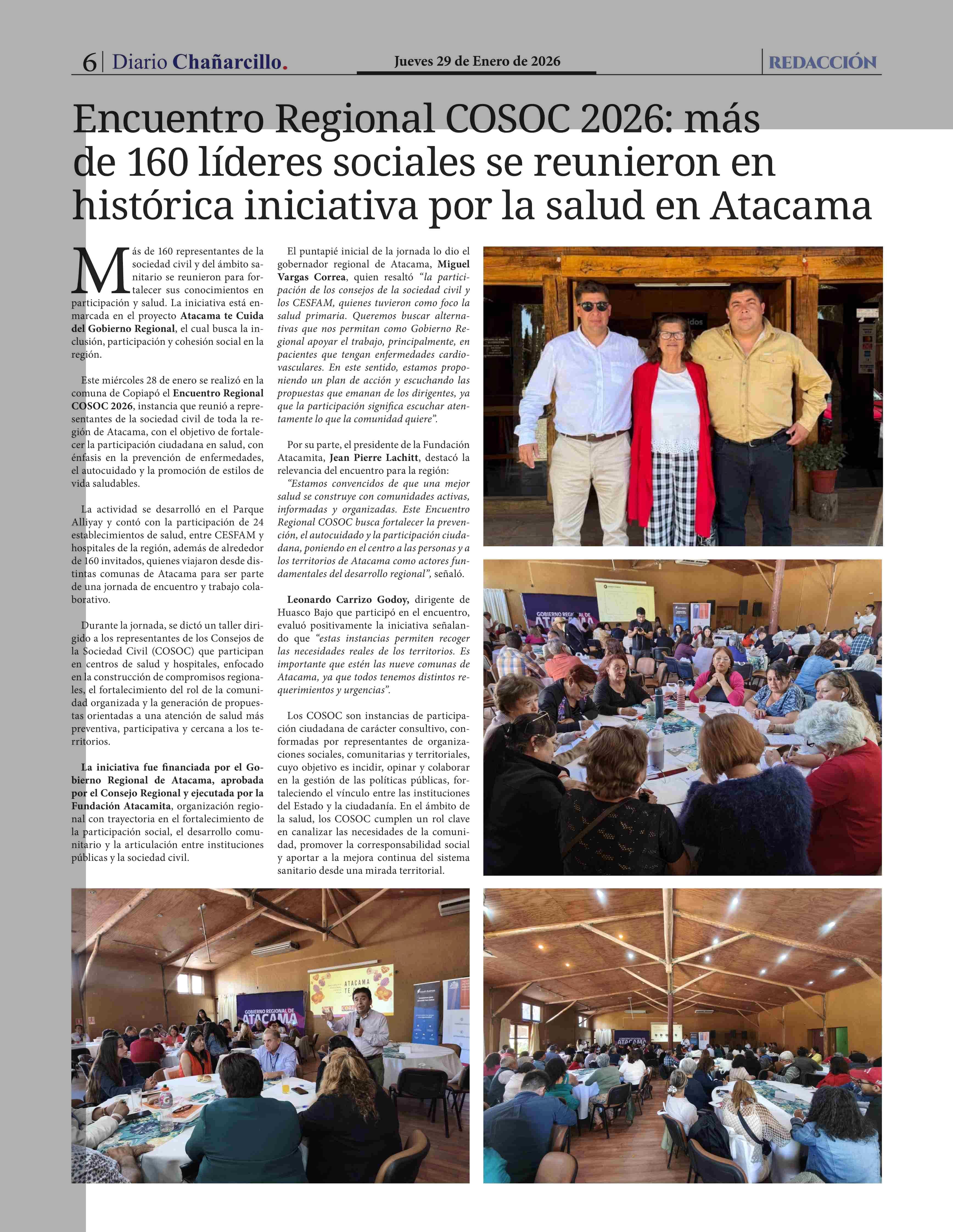 Encuentro Regional COSOC 2026: más de 160 líderes sociales se reunieron en histórica iniciativa por la salud en Atacama 29-01-2026 Diario Chañarcillo |