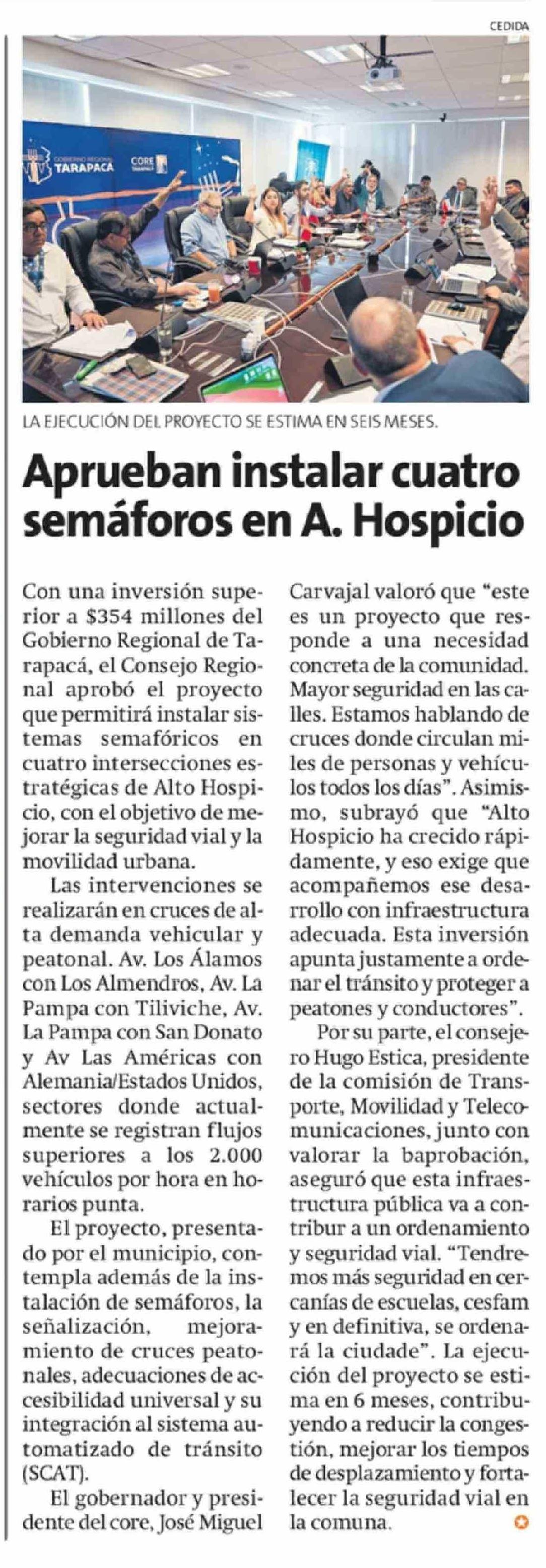 Aprueban instalar cuatro semáforos en A. Hospicio 28-03-2026 La Estrella de Iquique |