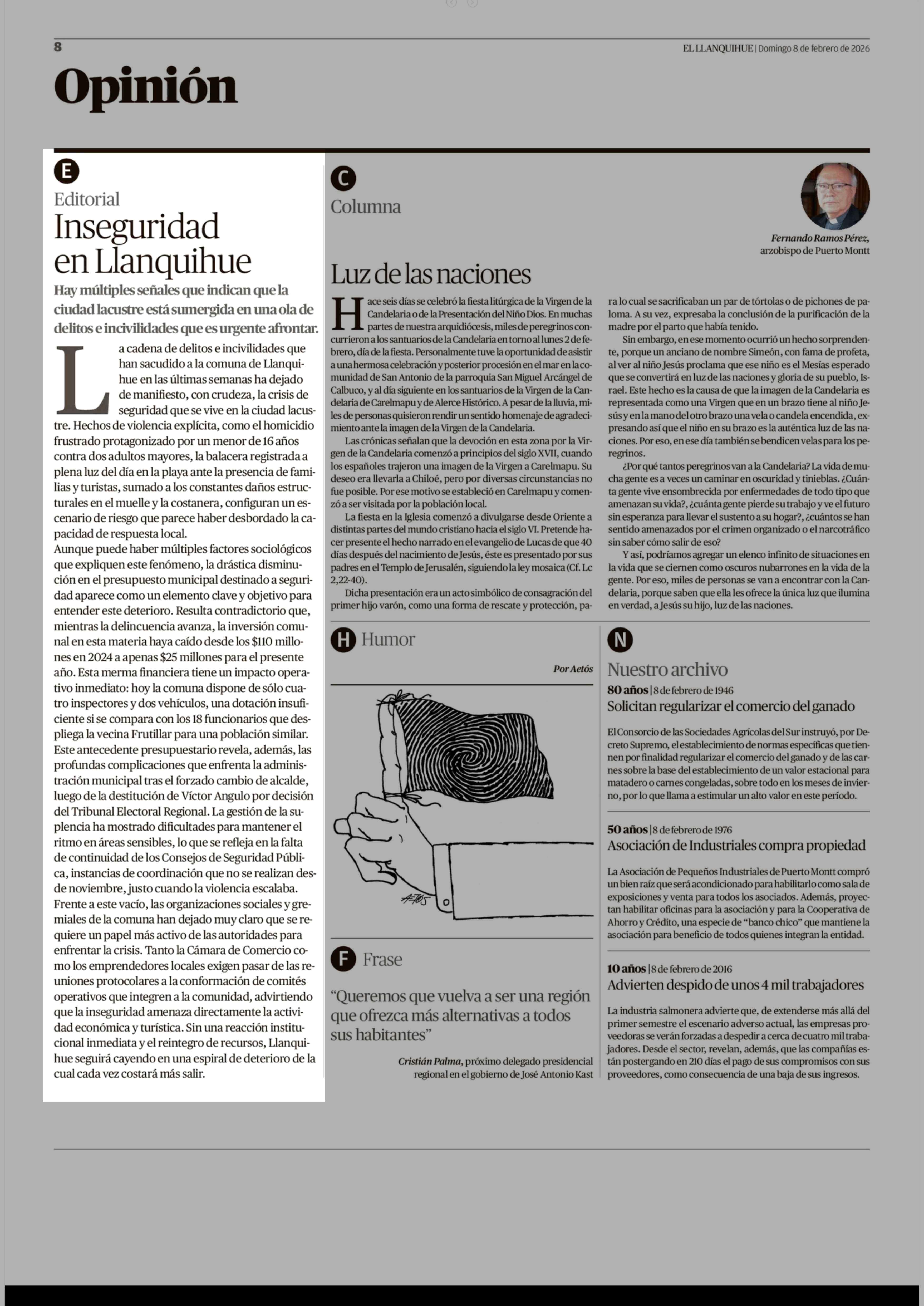 Fecha: 08-02-2026 Sector: Editorial Región: Región de Los Lagos