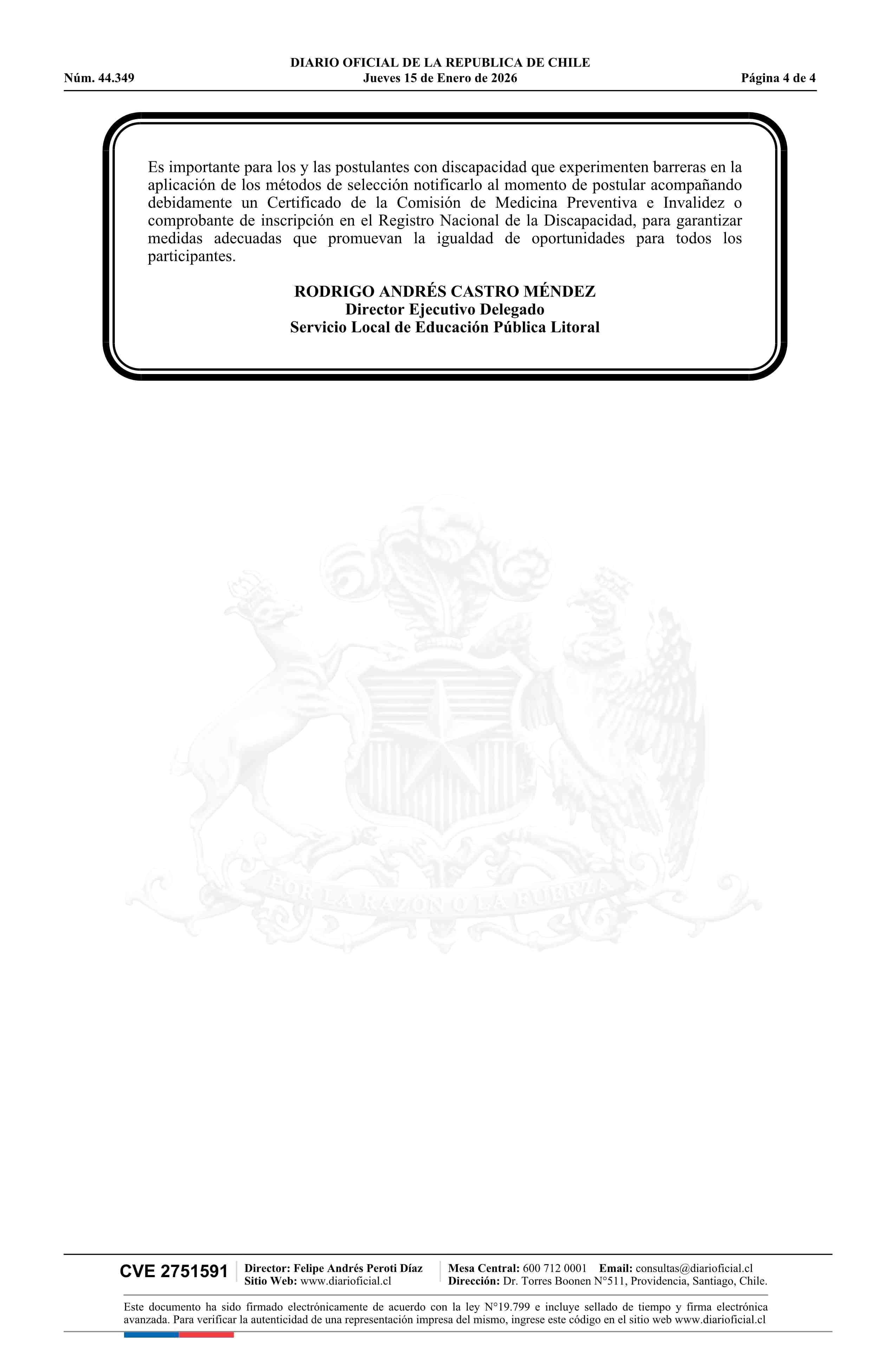 Título: AVISO LICITACIONES: Servicio Local de Educación Pública Litoral llama a concurso público para cargos que indica