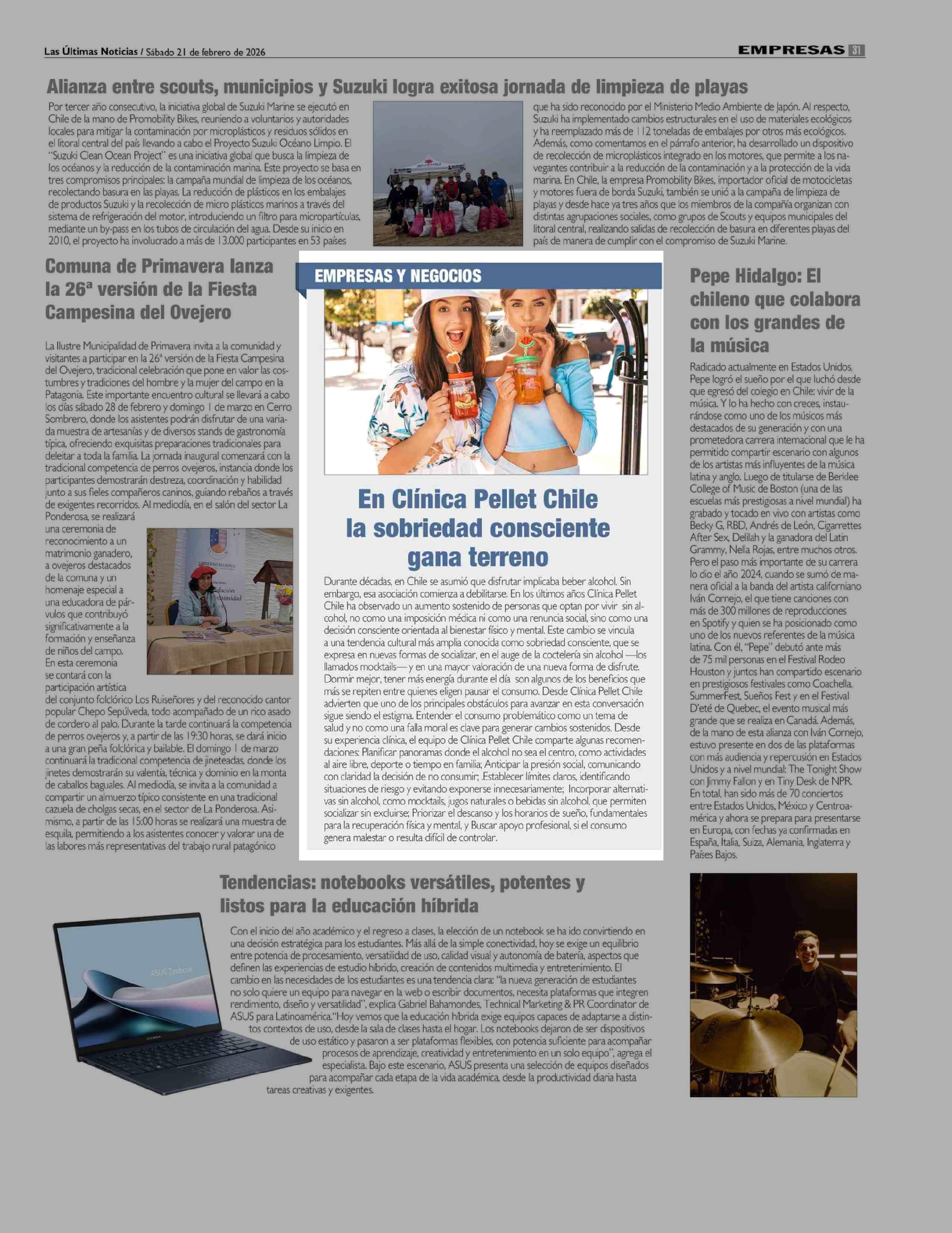 En Clínica Pellet Chile la sobriedad consciente gana terreno 21-02-2026 Las Últimas Noticias |