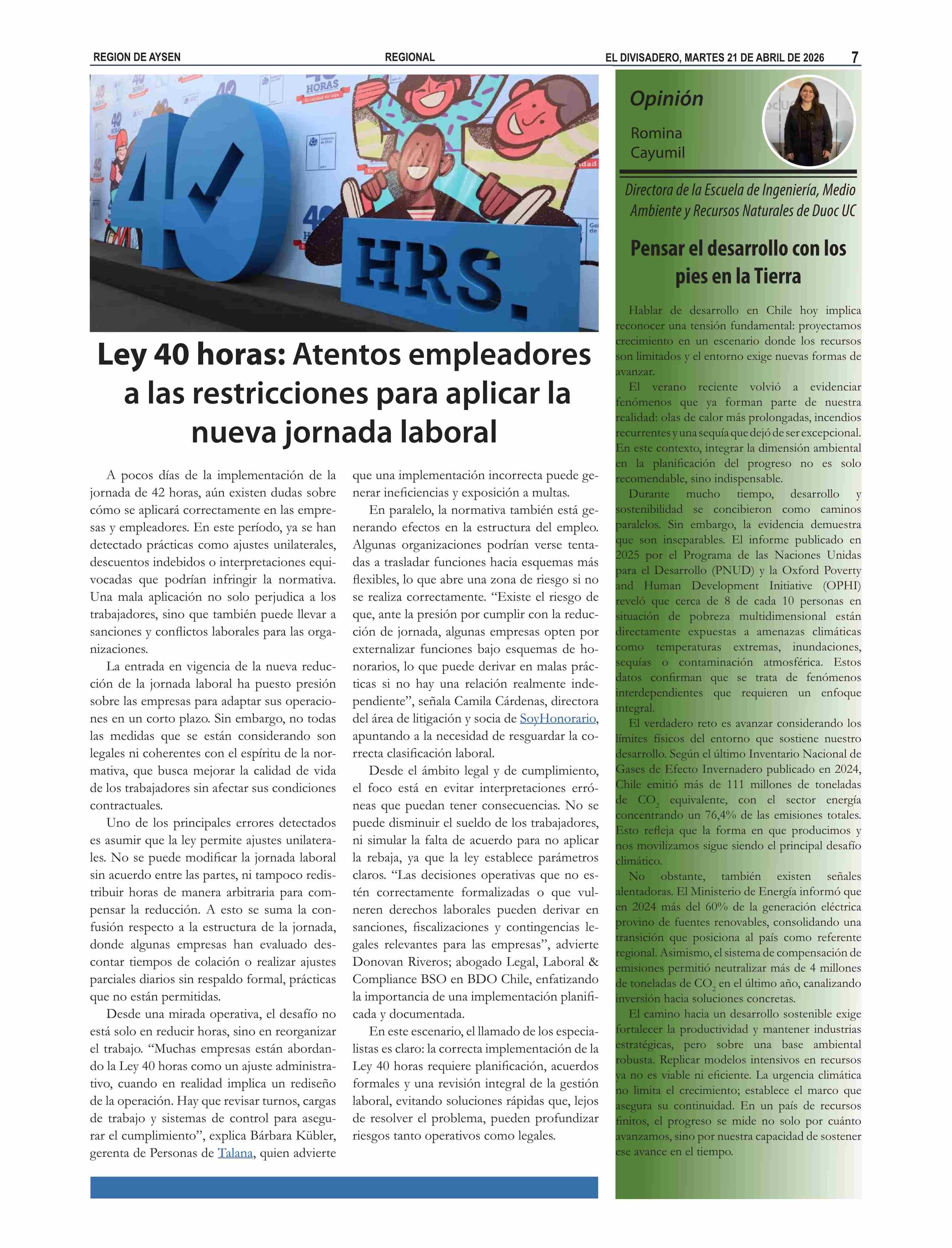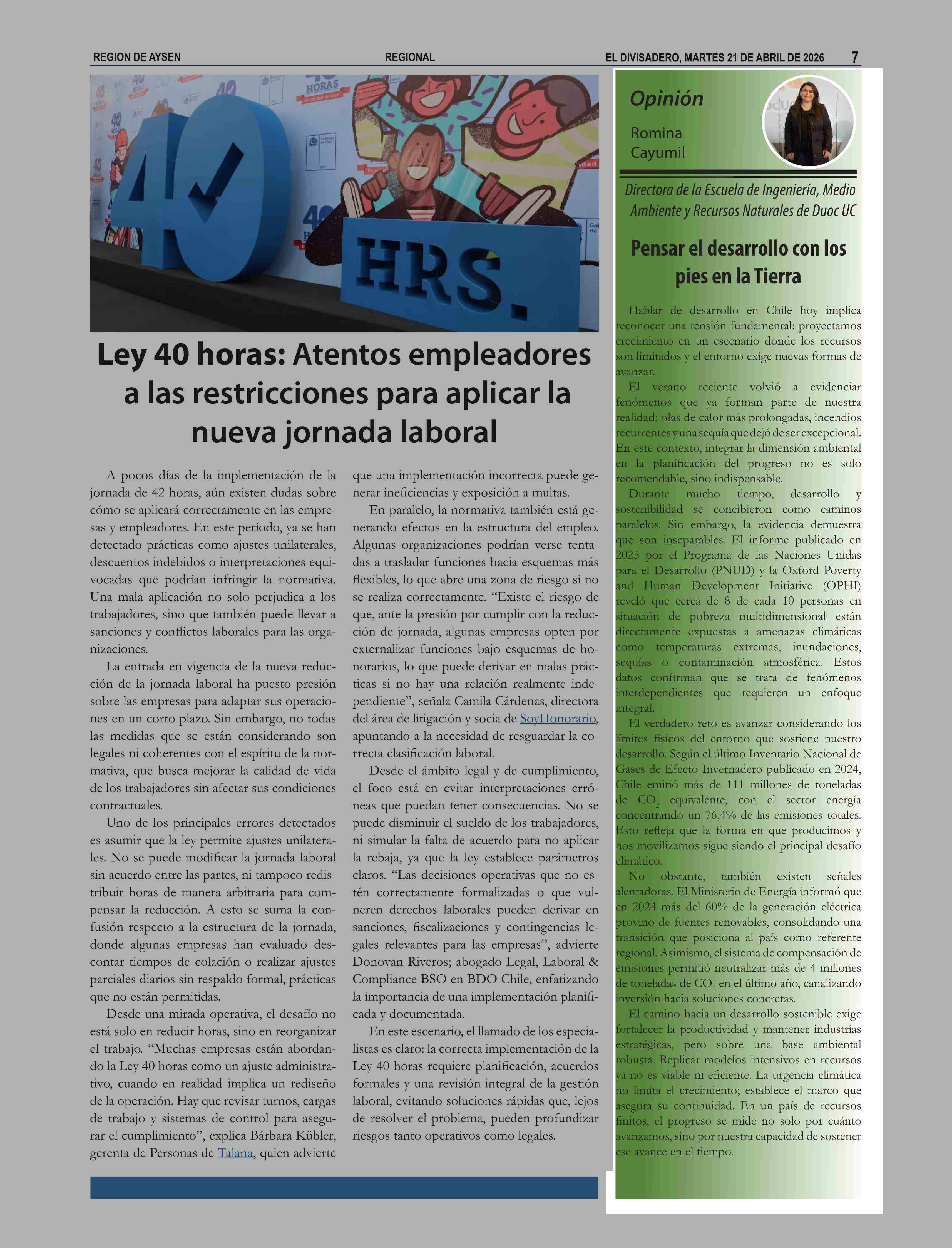 COLUMNAS DE OPINIÓN: Pensar el desarrollo con los pies en la Tierra 21-04-2026 El Divisadero |