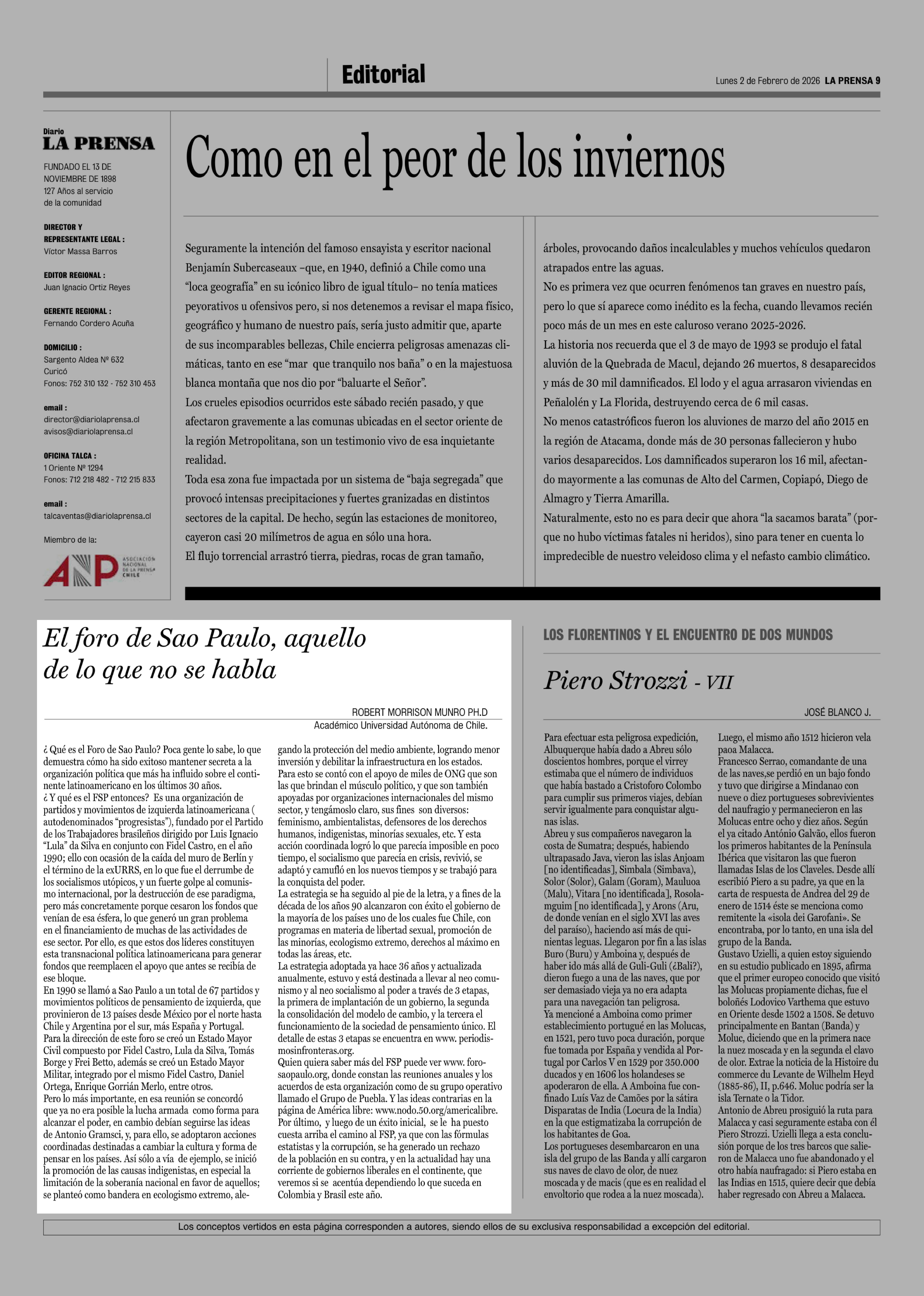 Fecha: 02-02-2026 Sector: Columnas de Opinión Región: Región del Maule