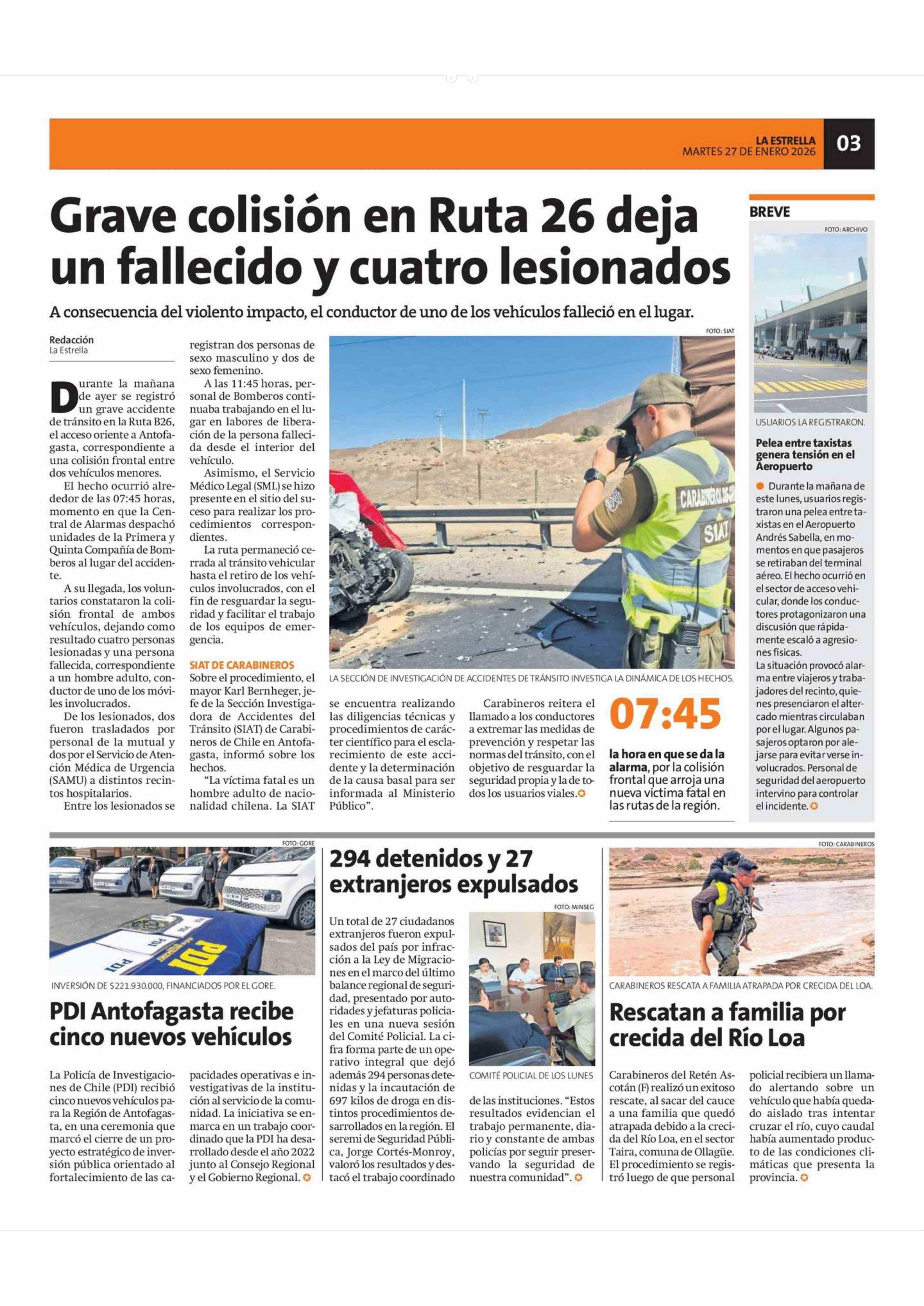 Fecha: 27-01-2026 Sector: Noticia general Región: Región de Antofagasta