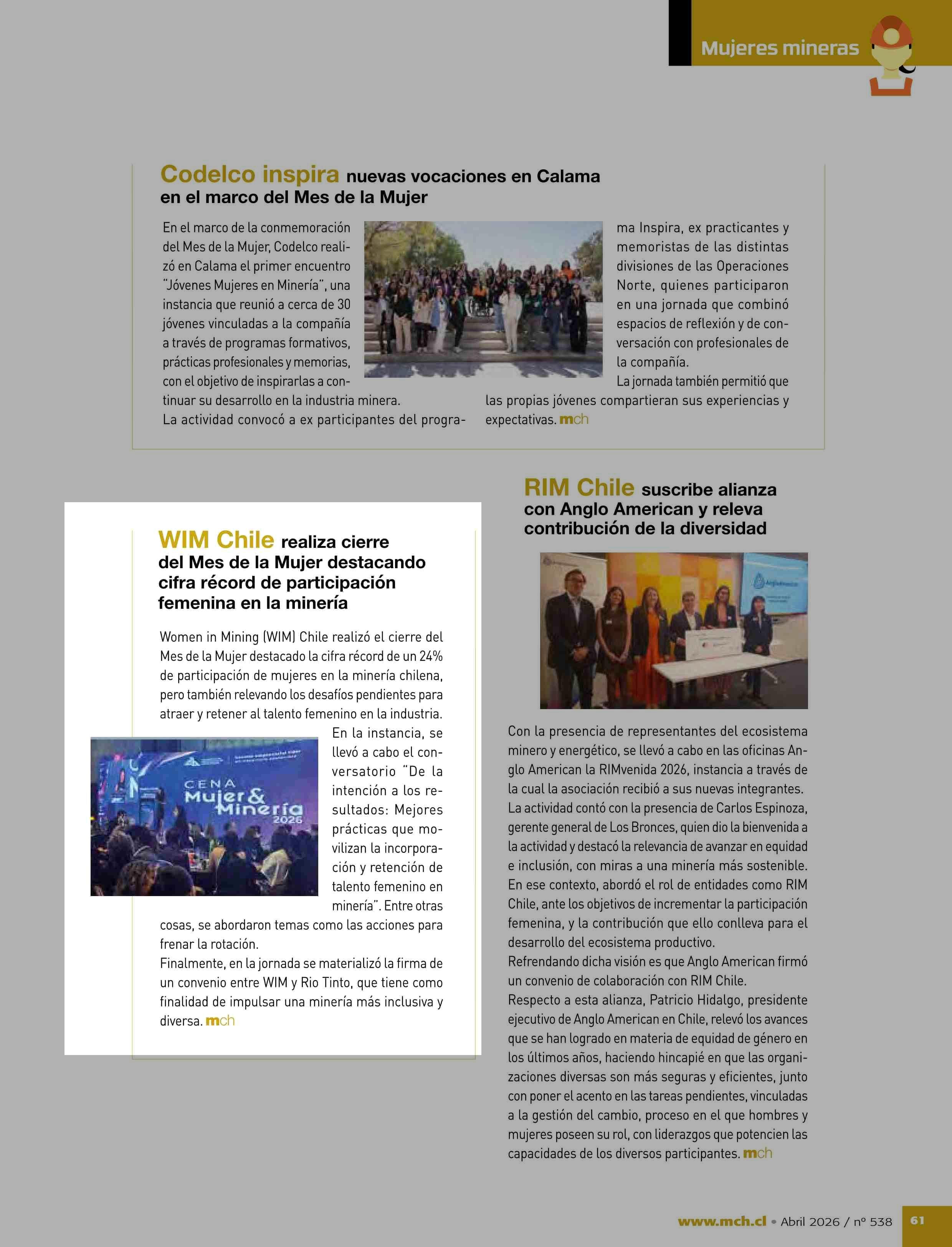 WIM Chile realiza cierre del Mes de la Mujer destacando cifra récord de participación femenina en la minería 23-04-2026 Revista Minería Chilena |