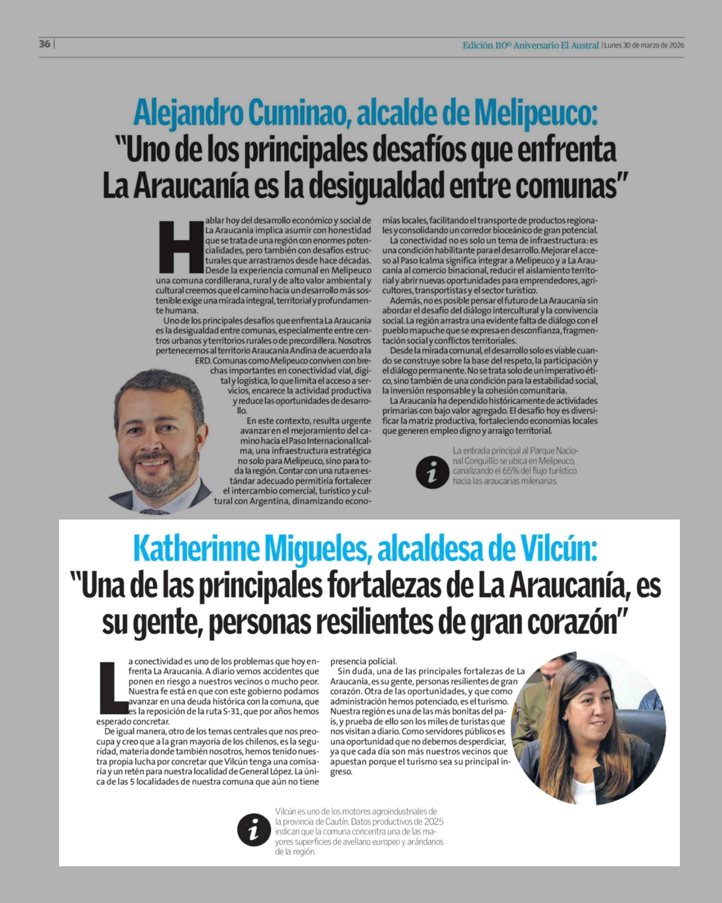 Columnas de Opinión: "Una de las principales fortalezas de La Araucania, es su gente, personas resilientes de gran corazón" 30-03-2026 El Austral de la Araucanía |