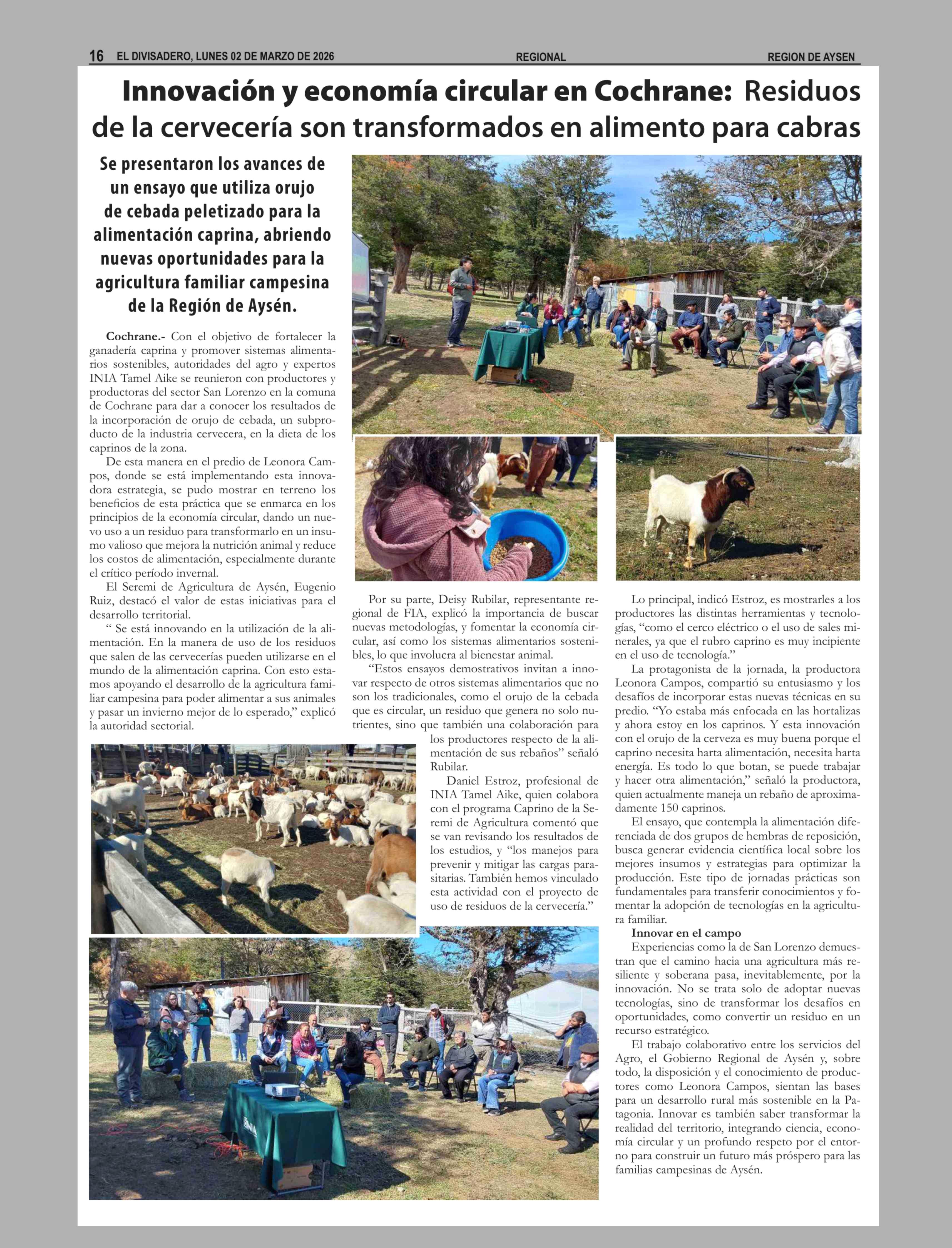 Título: Innovación y economía circular en Cochrane: Residuos de la cervecería son transformados en alimento para cabras