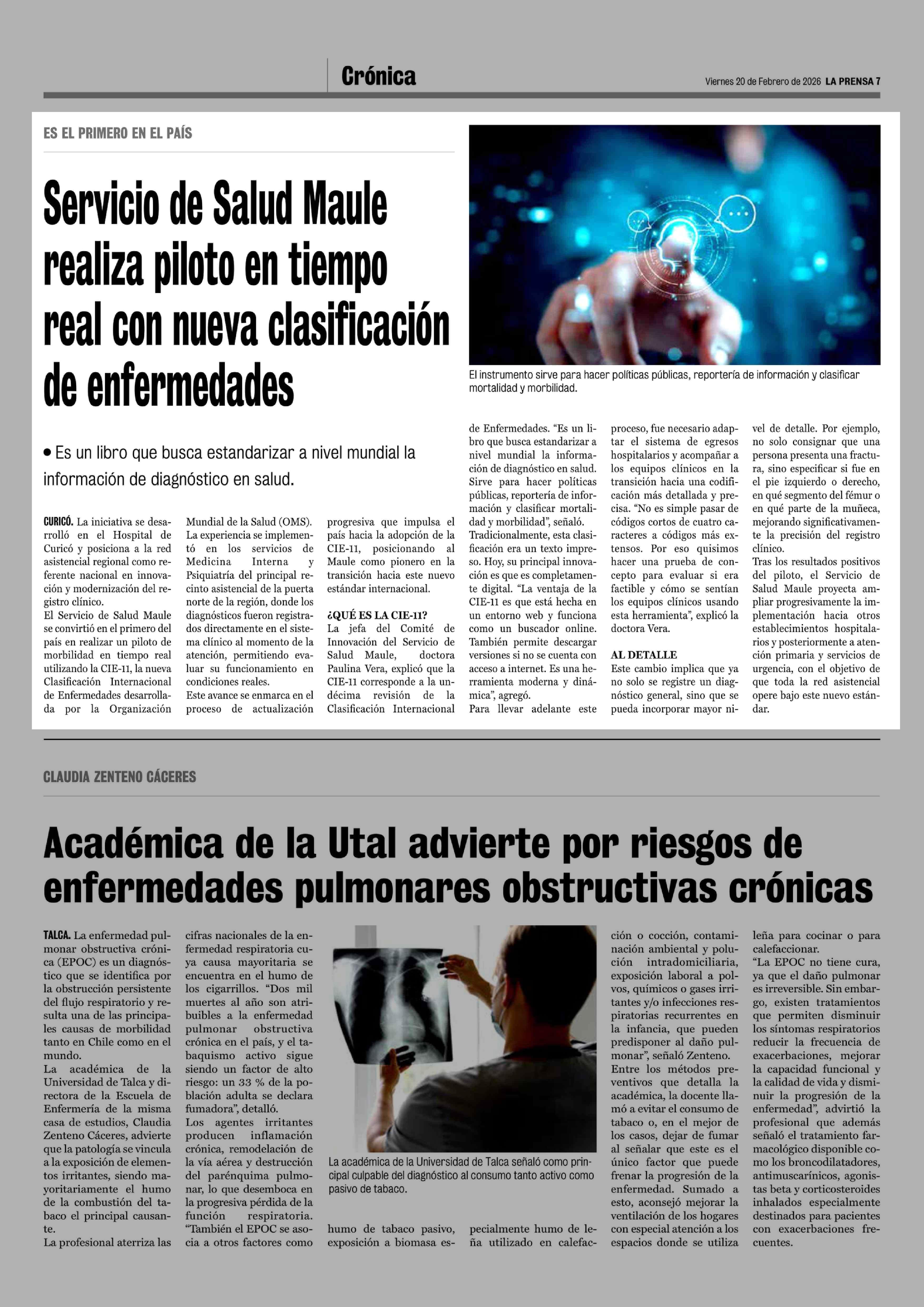Servicio de Salud Maule realiza piloto en tiempo real con nueva clasificación de enfermedades 20-02-2026 La Prensa de Curicó |