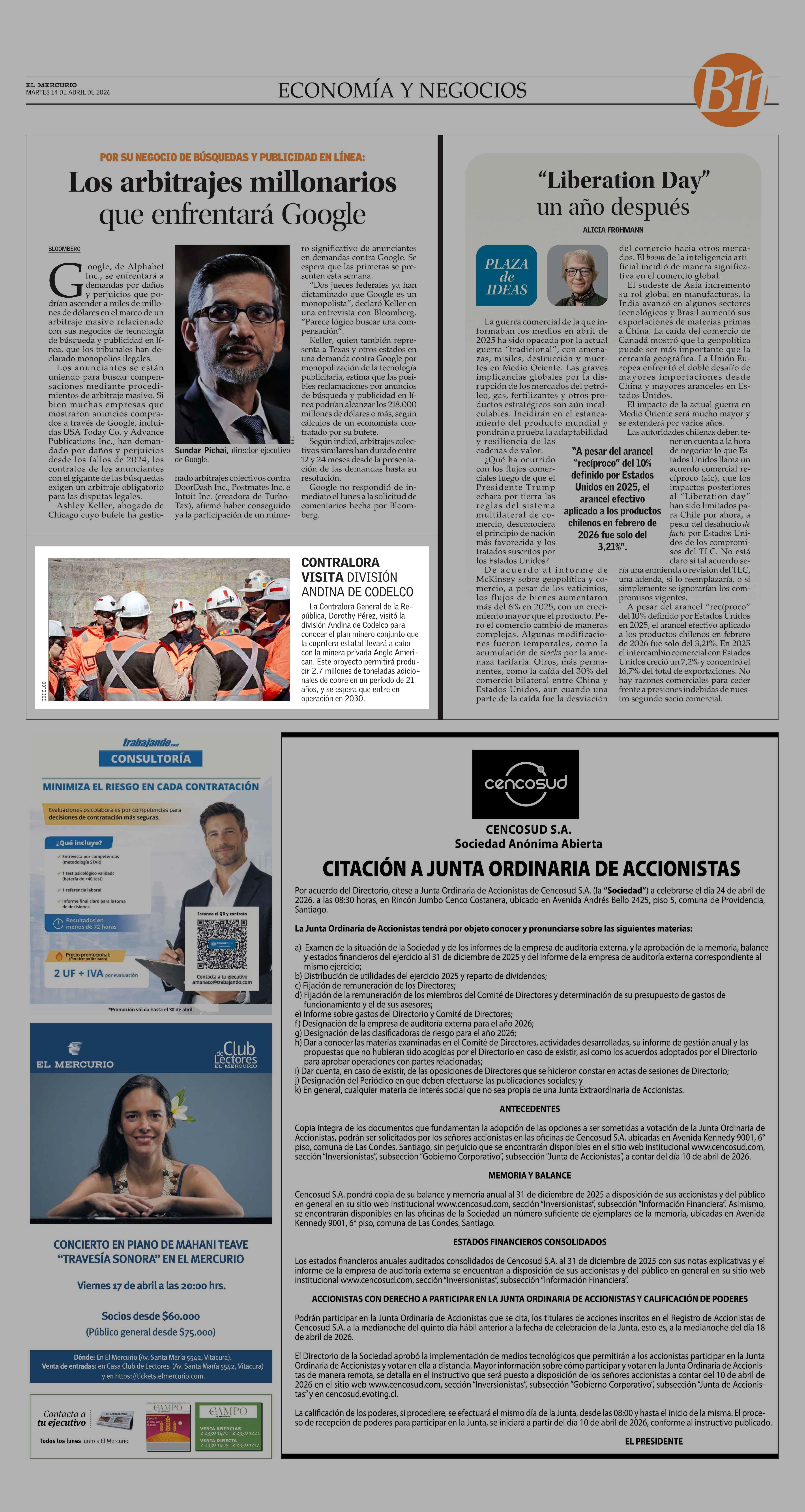 | Fuente: | El Mercurio (El Mercurio - Cuerpo B) | Página(s): | 11 |