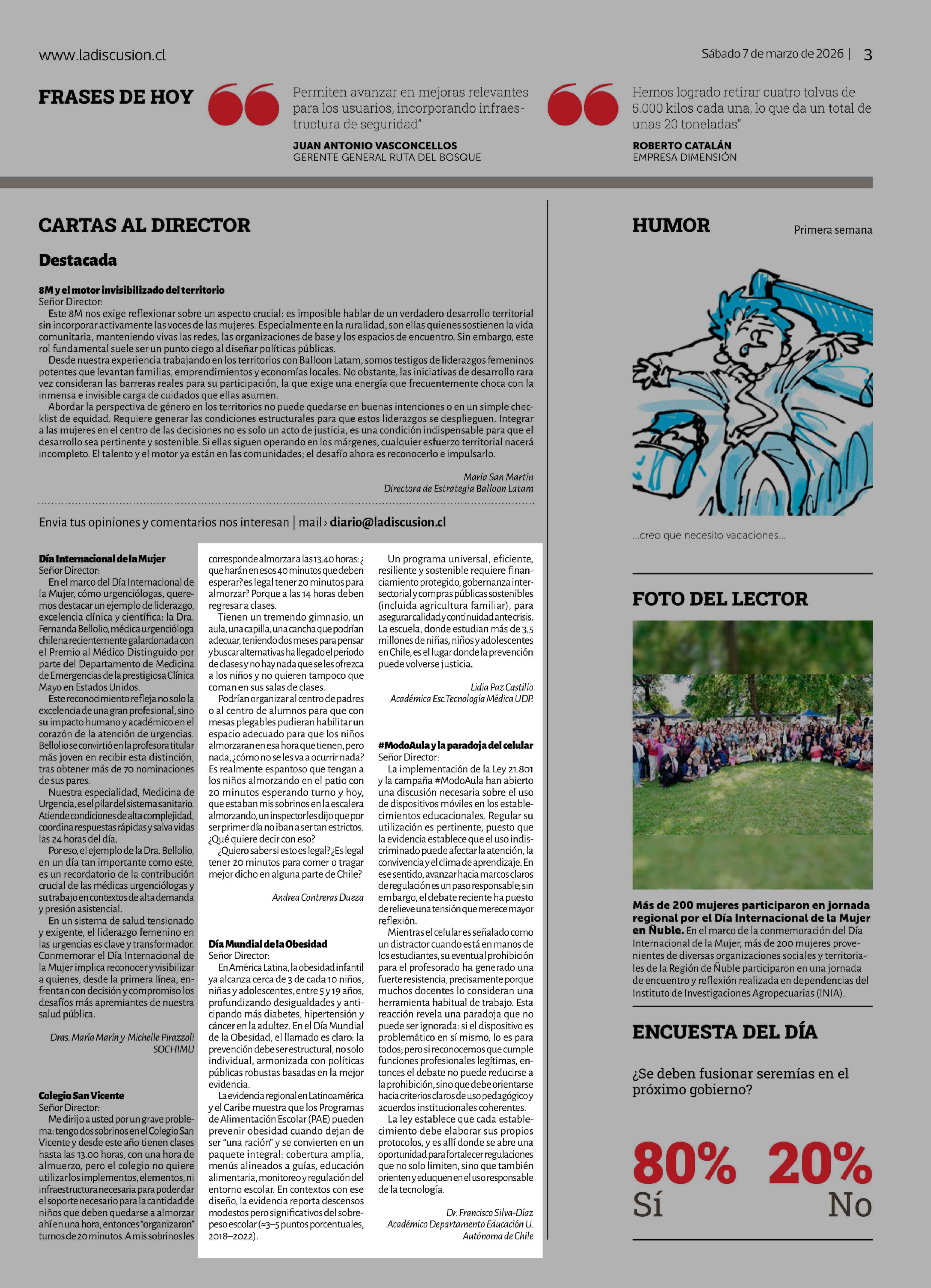 Cartas: Día Mundial de la Obesidad 07-03-2026 La Discusión |