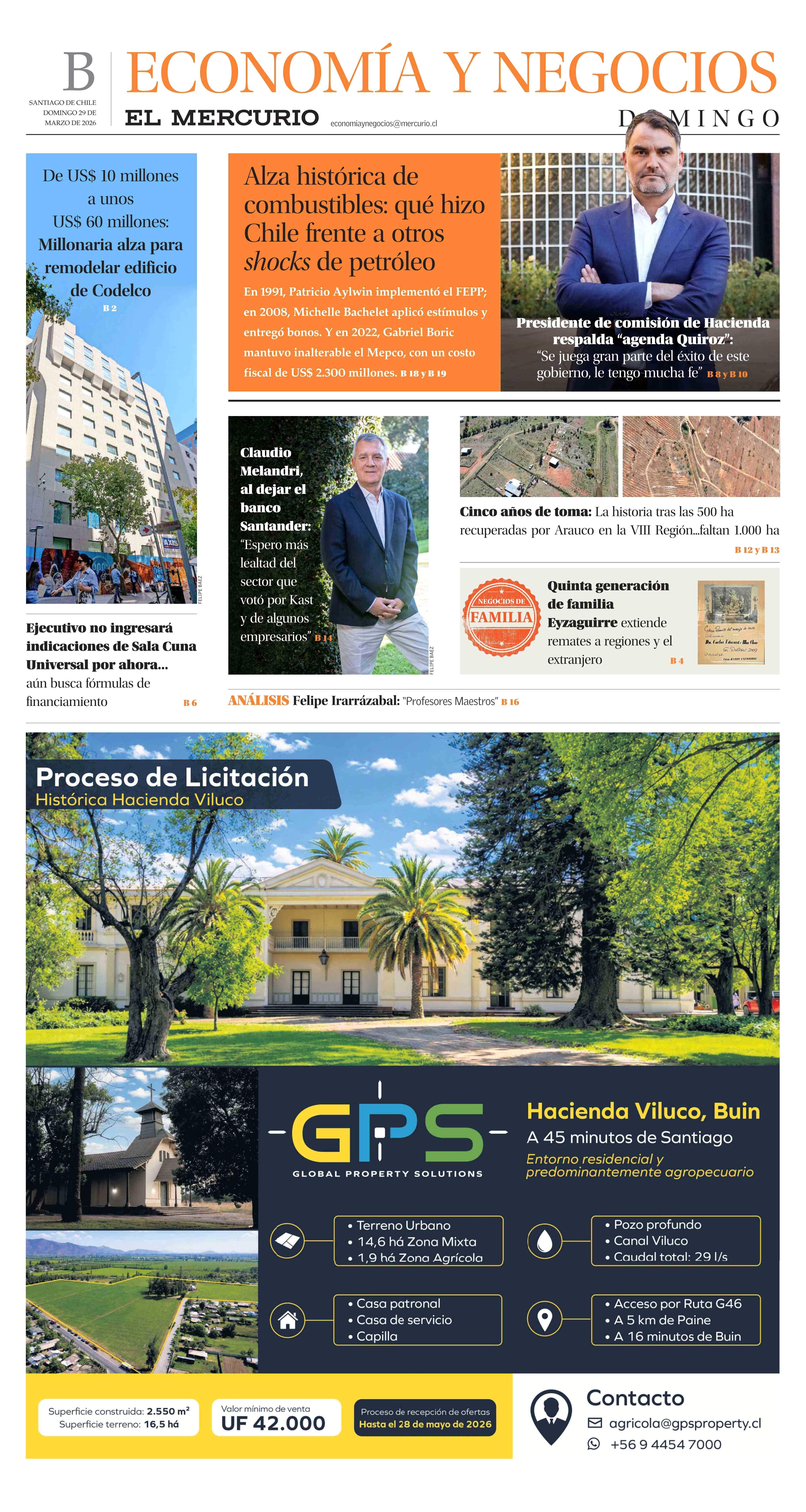 PORTADA EL MERCURIO (B) CHILE 29-03-2026 El Mercurio |