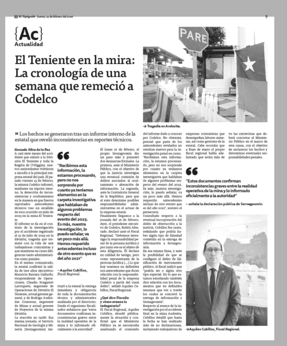 El Teniente en la mira: La cronología de una semana que remeció a Codelco 19-02-2026 El Tipógrafo |