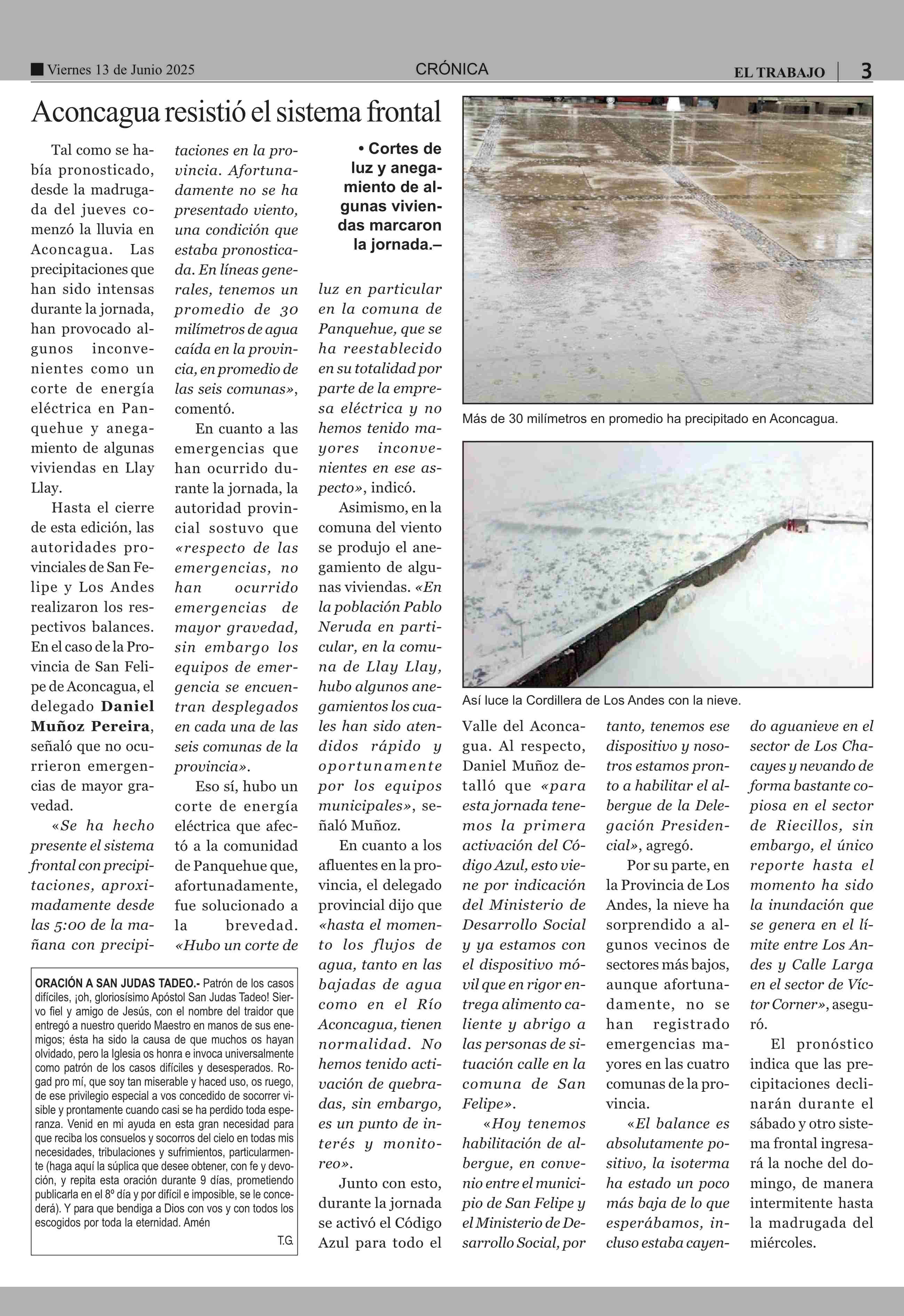 Aconcagua resistió el sistema frontal 13-06-2025 El Trabajo |