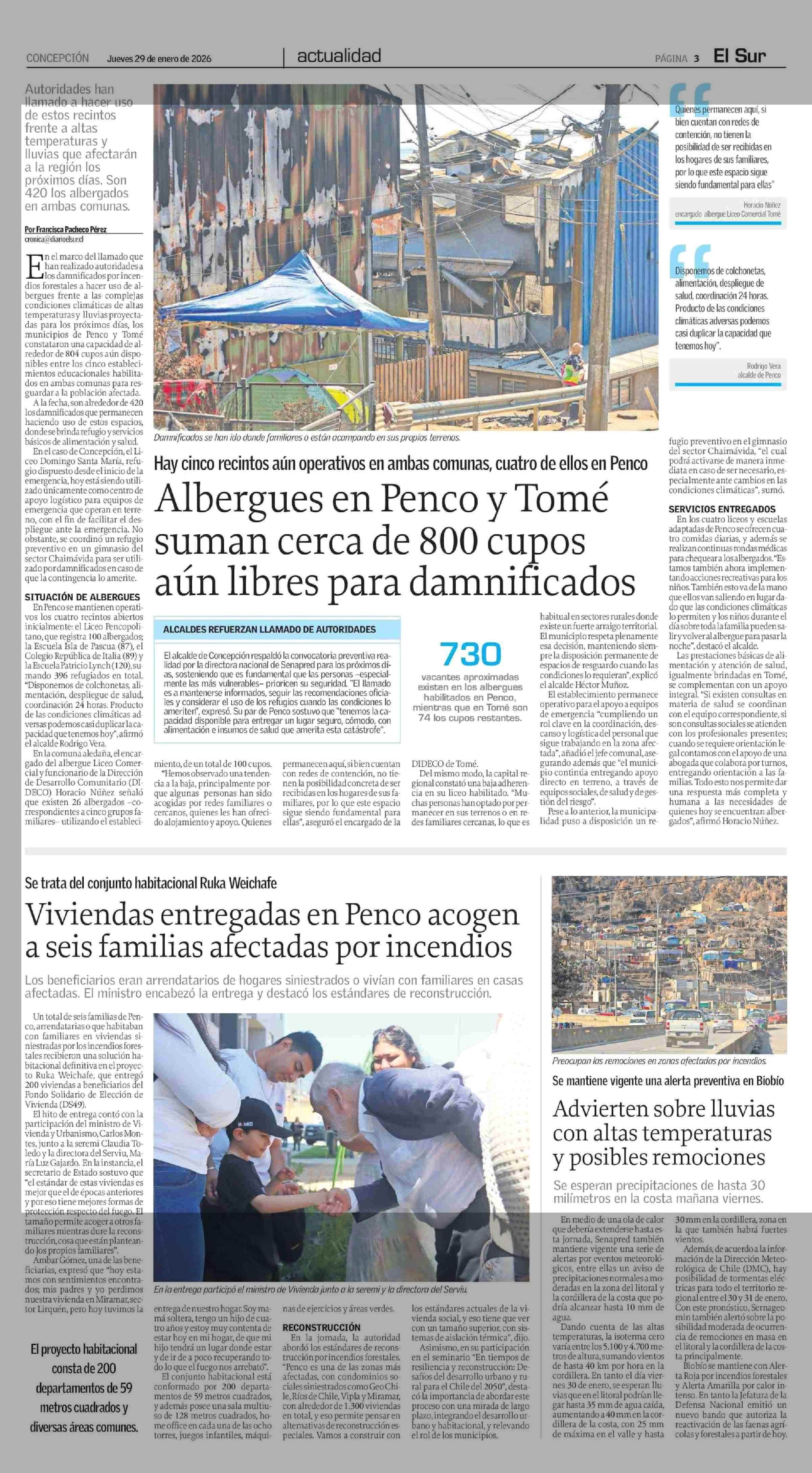 Título: Albergues en Penco y Tomé suman cerca de 800 cupos aún libres para damnificados