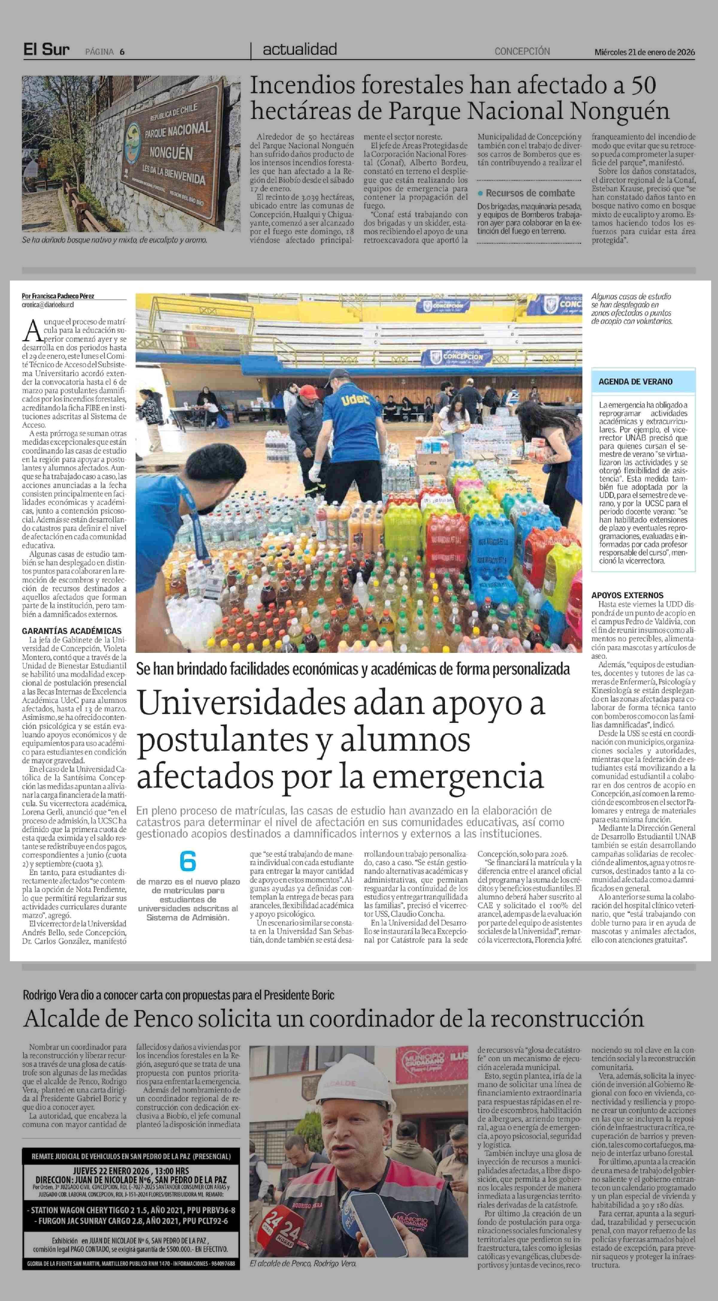 Universidades adan apoyo a postulantes y alumnos afectados por la emergencia 21-01-2026 El Sur |