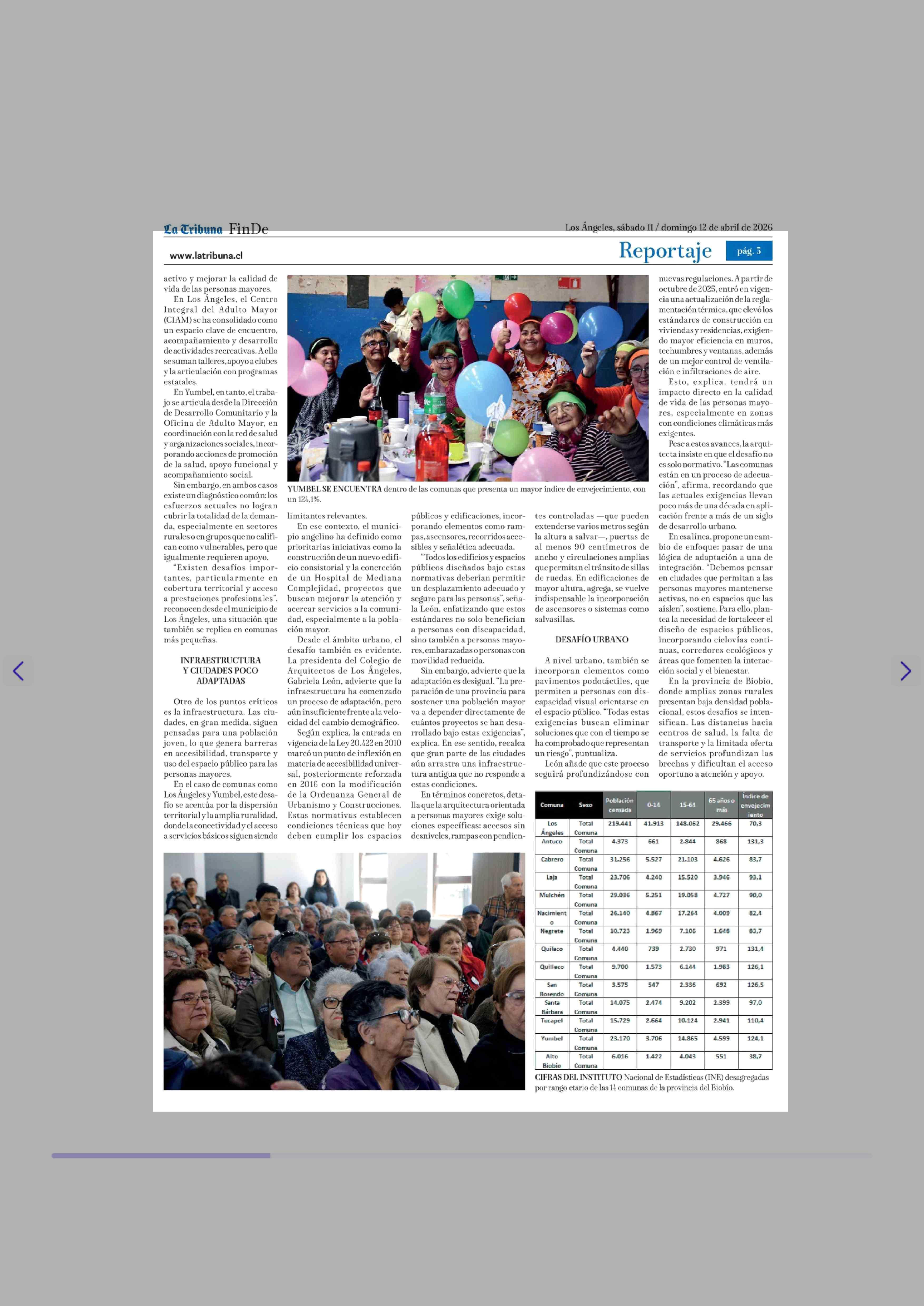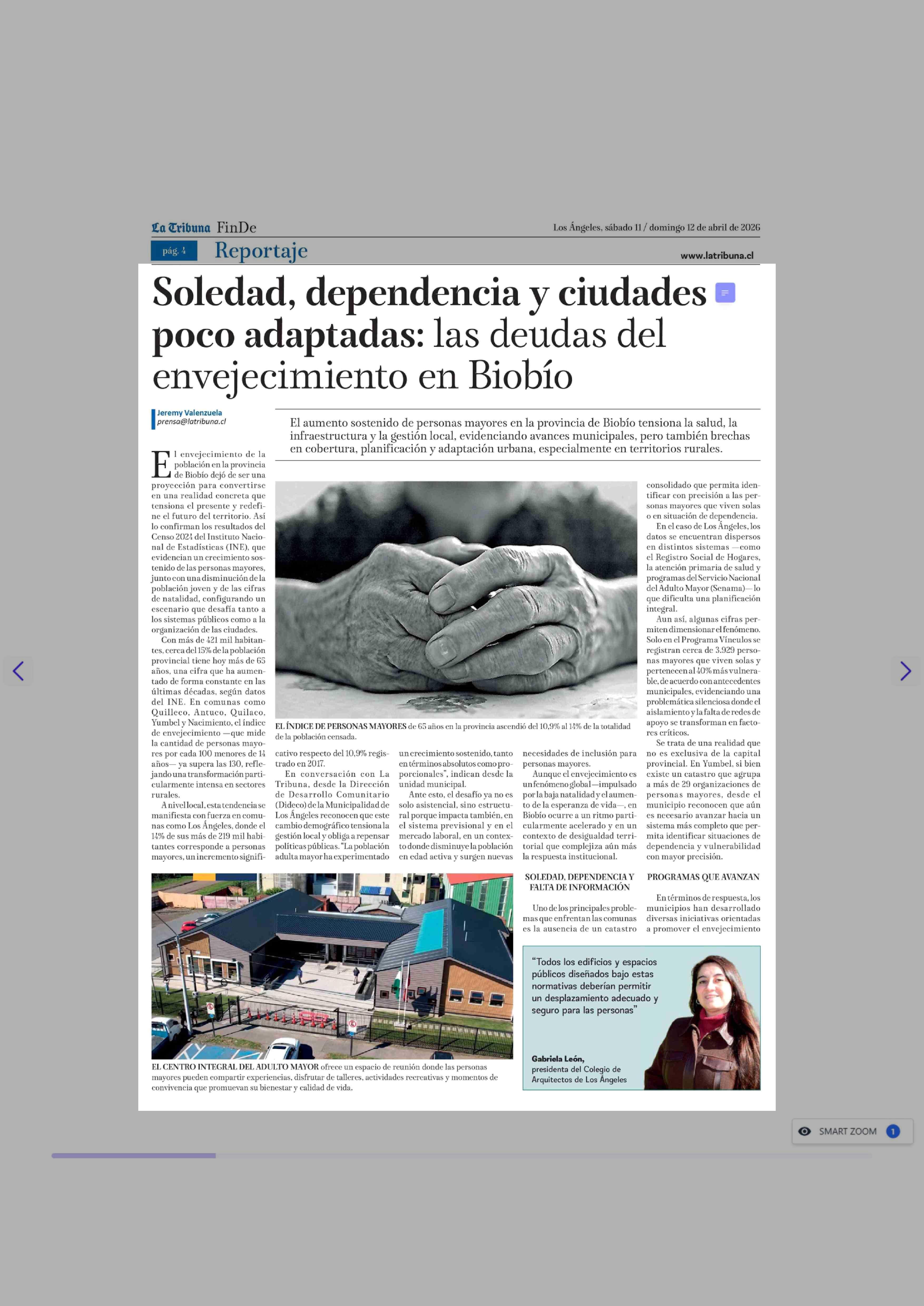 Título: Soledad, dependencia y ciudades poco adaptadas: las deudas del envejecimiento en Biobío