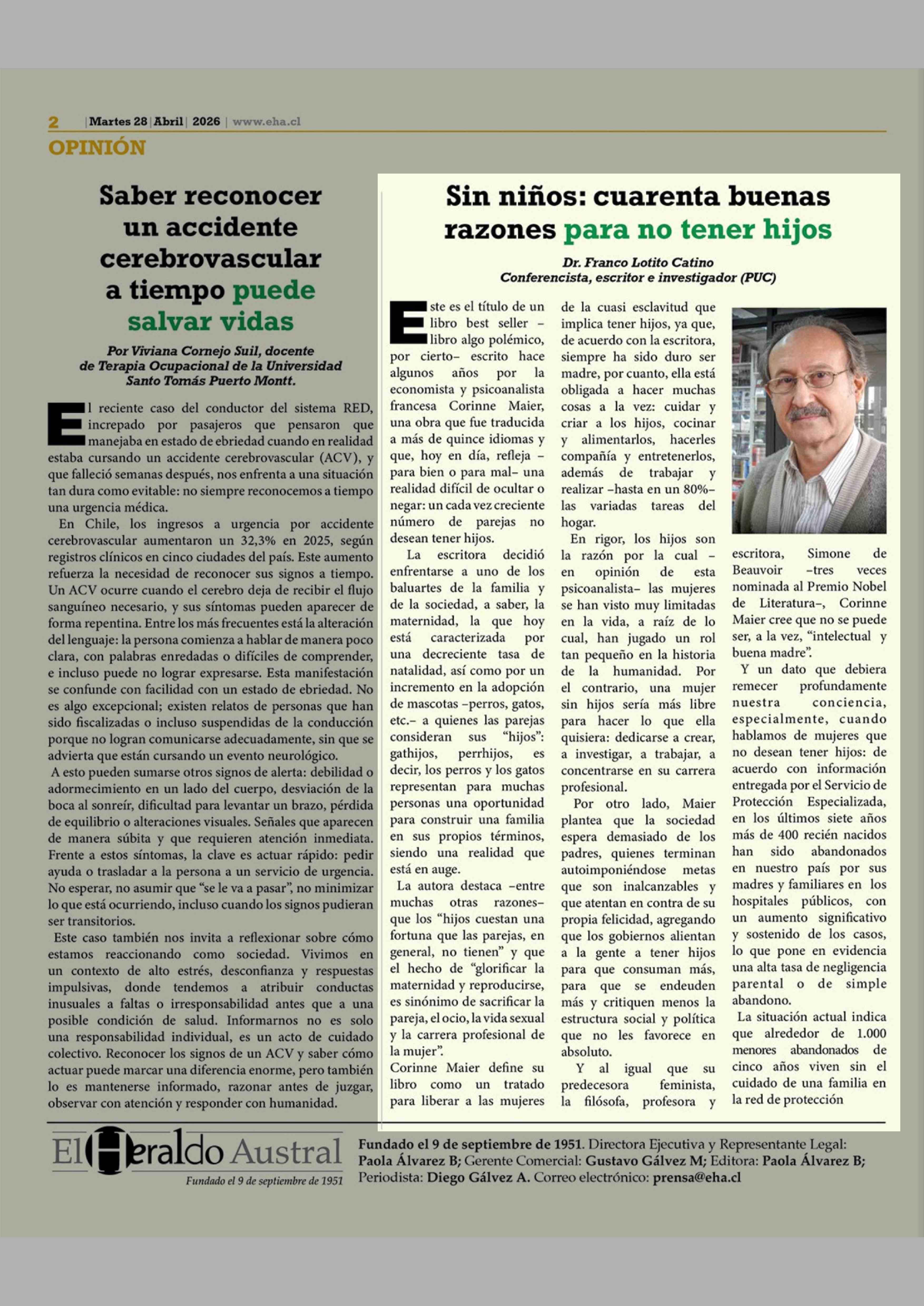Fecha: 28-04-2026 Sector: Columnas de Opinión Región: Región de Los Lagos