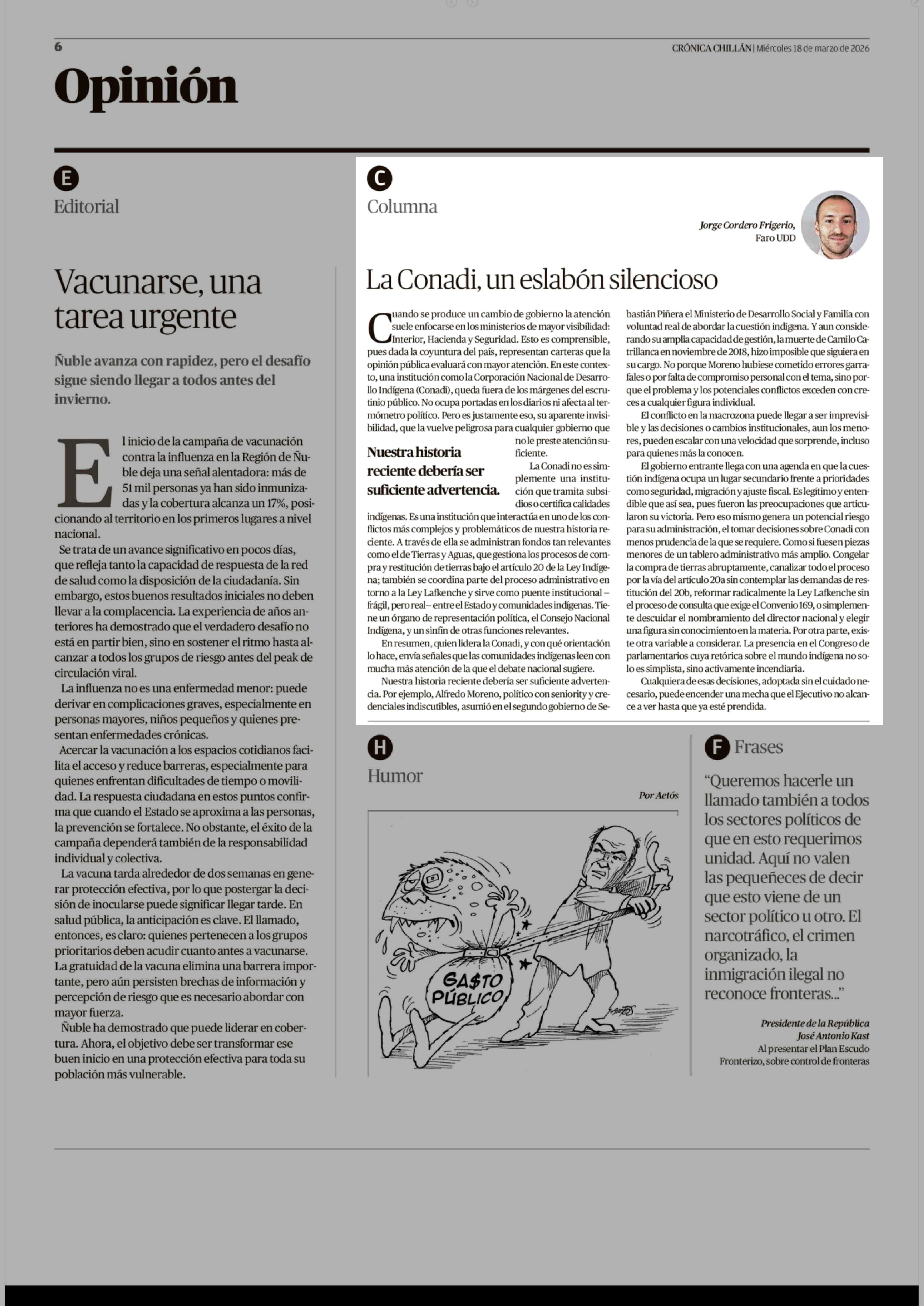 Fecha: 18-03-2026 Sector: Columnas de Opinión Región: Región del Ñuble