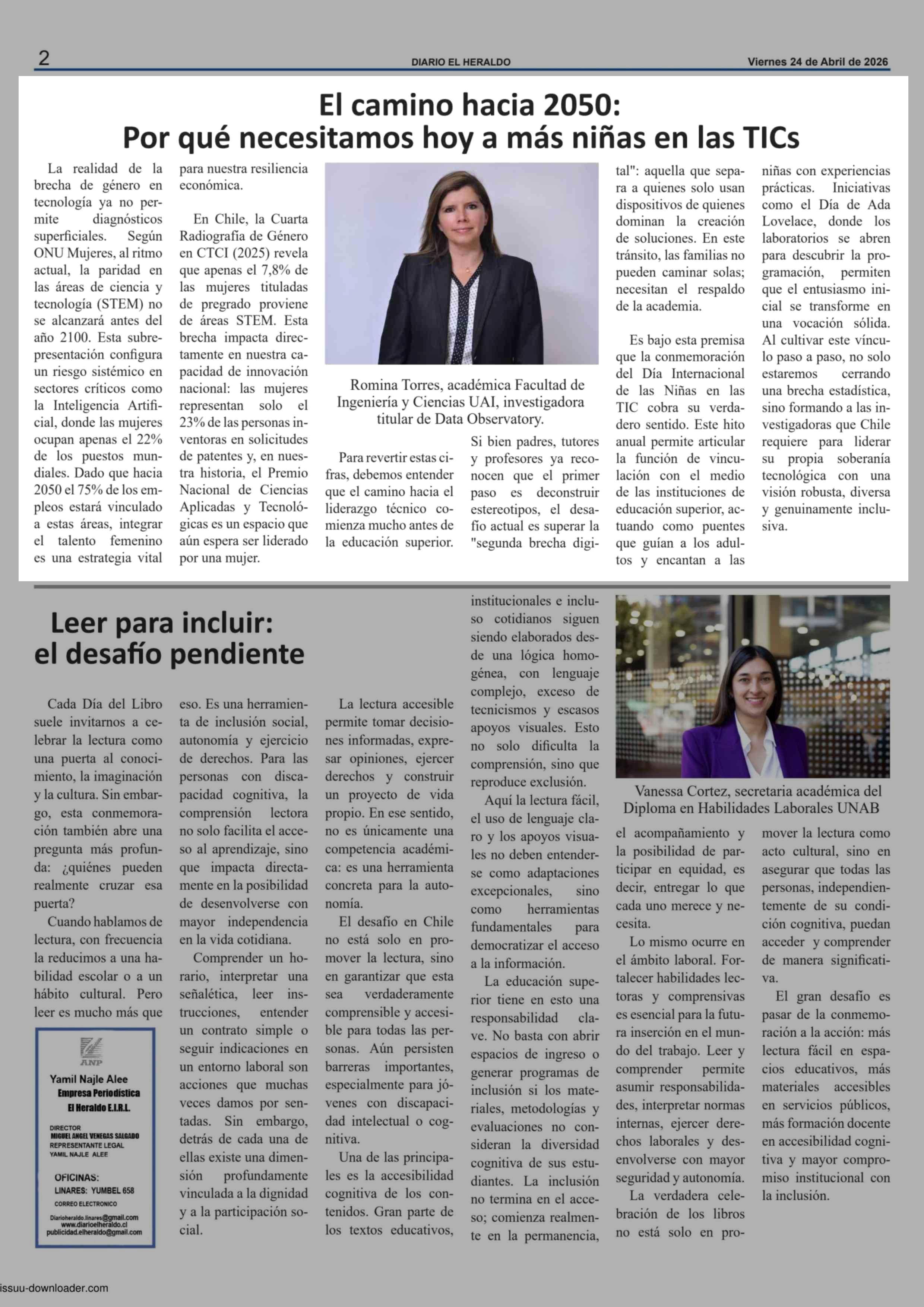 Título: Columnas de Opinión: El camino hacia 2050: Por qué necesitamos hoy a más niñas en las TICs