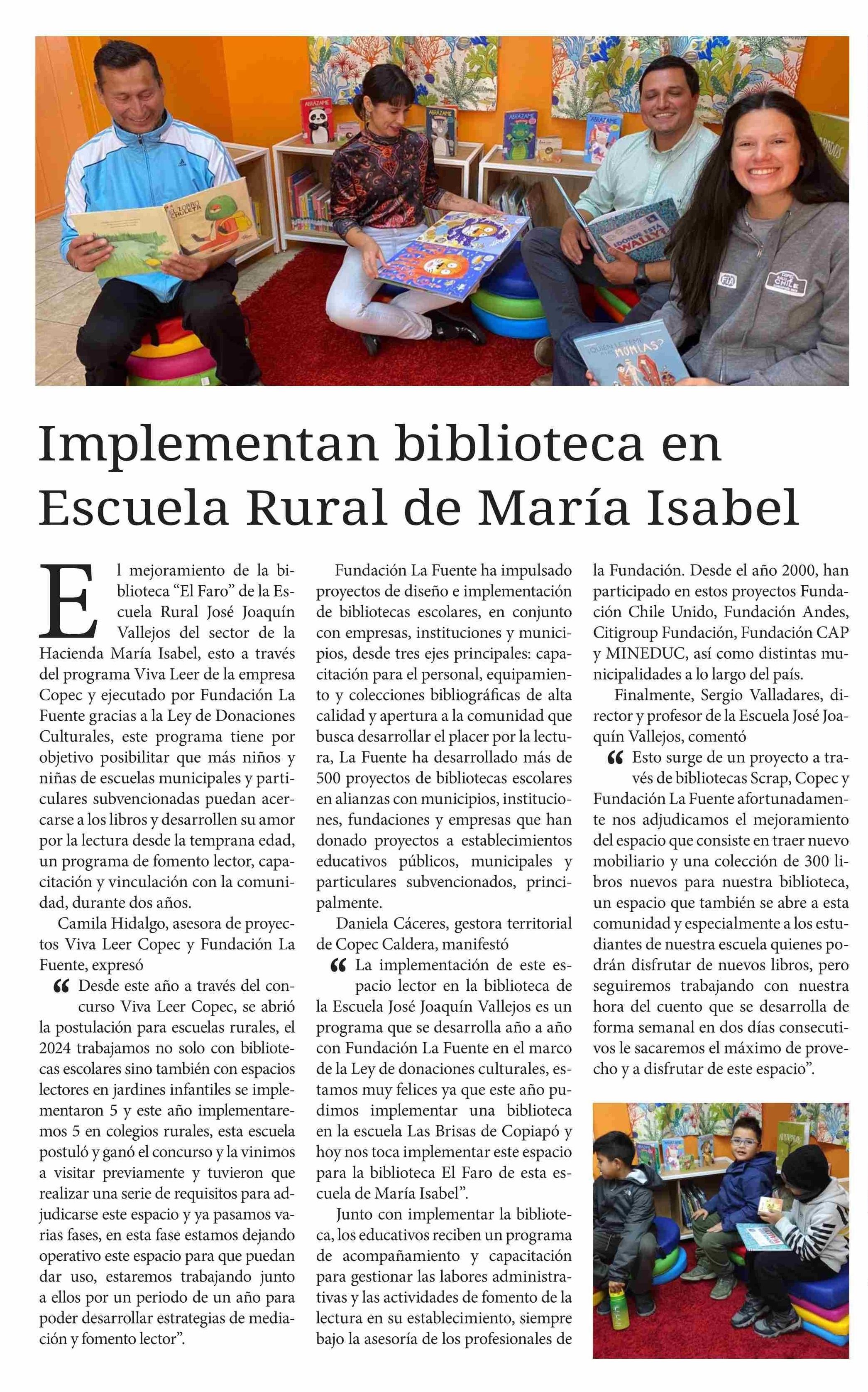Implementan biblioteca en Escuela Rural de María Isabel 23-05-2025 Diario Chañarcillo |