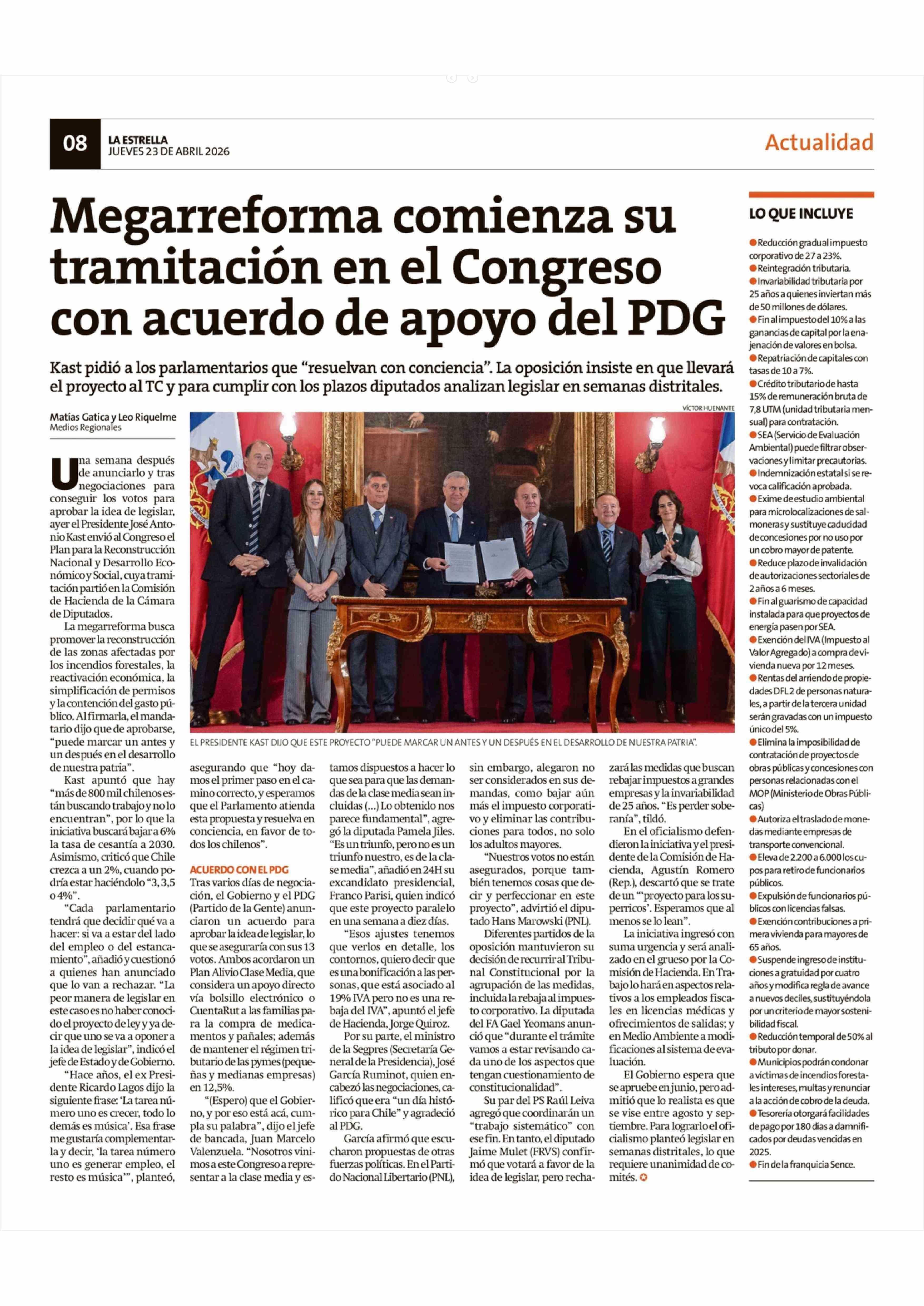 Megarreforma comienza su tramitación en el Congreso con acuerdo de apoyo del PDG 23-04-2026 La Estrella de Chiloé |