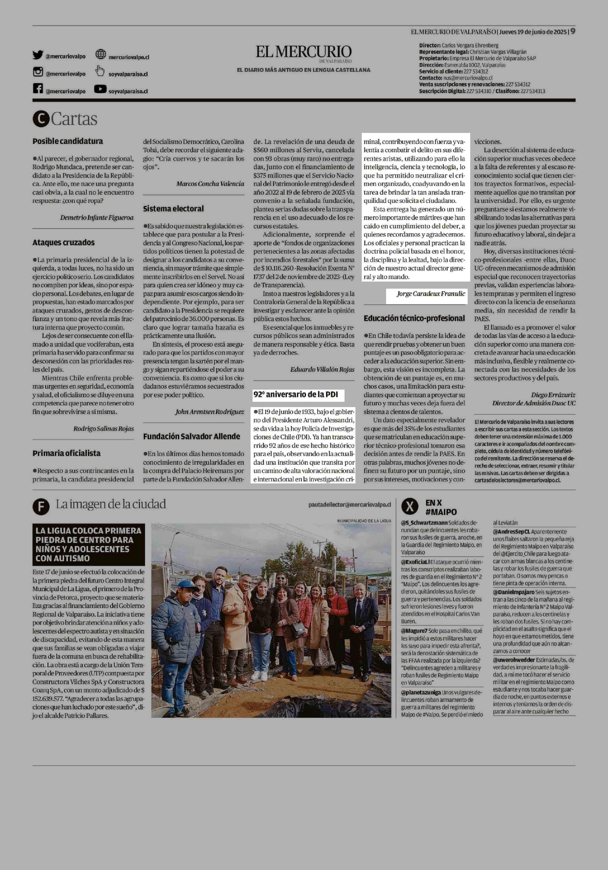 92" aniversario de la PDI 19-06-2025 El Mercurio de Valparaíso |