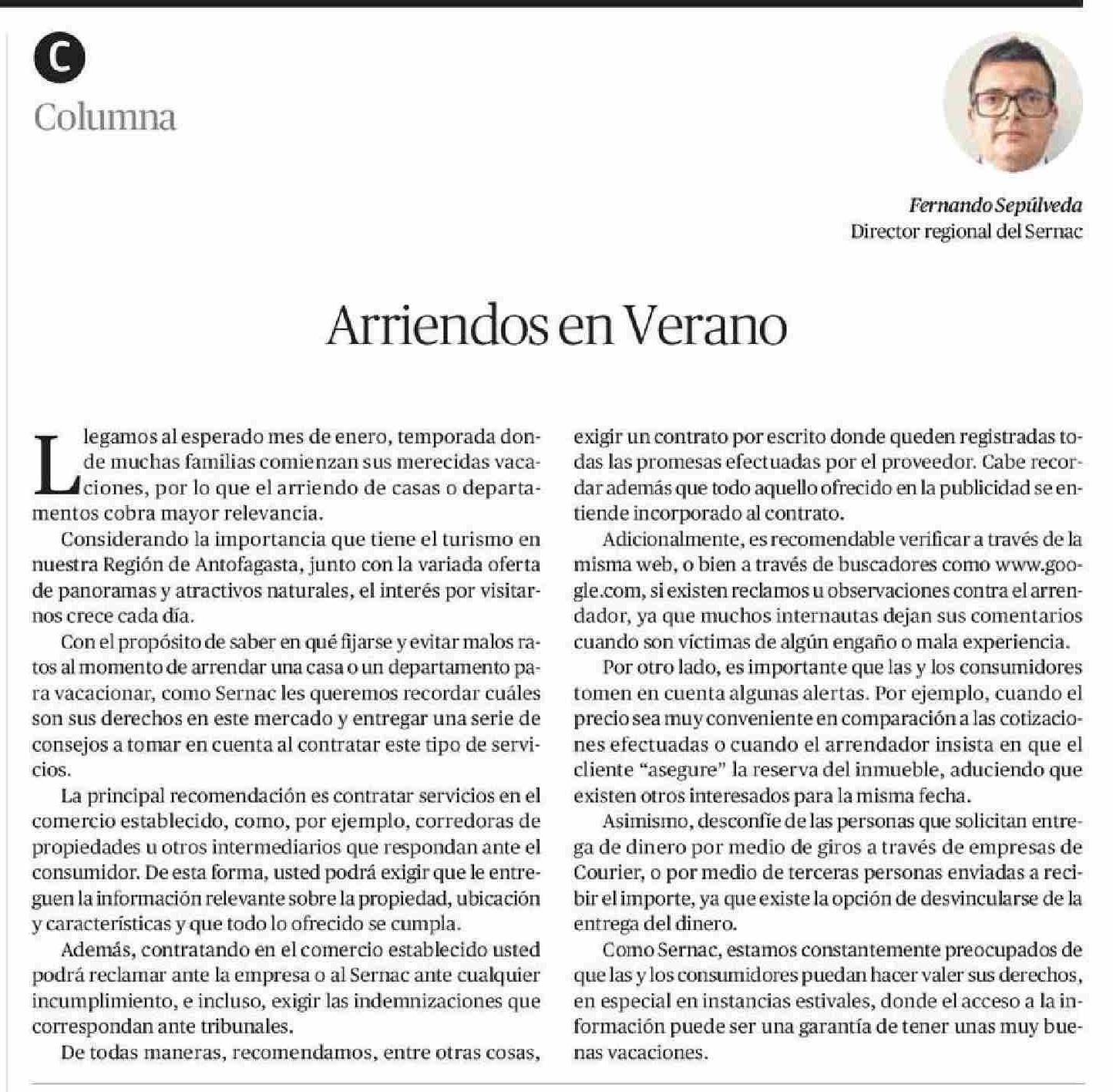 Título: Columnas de Opinión: Arriendos en Verano