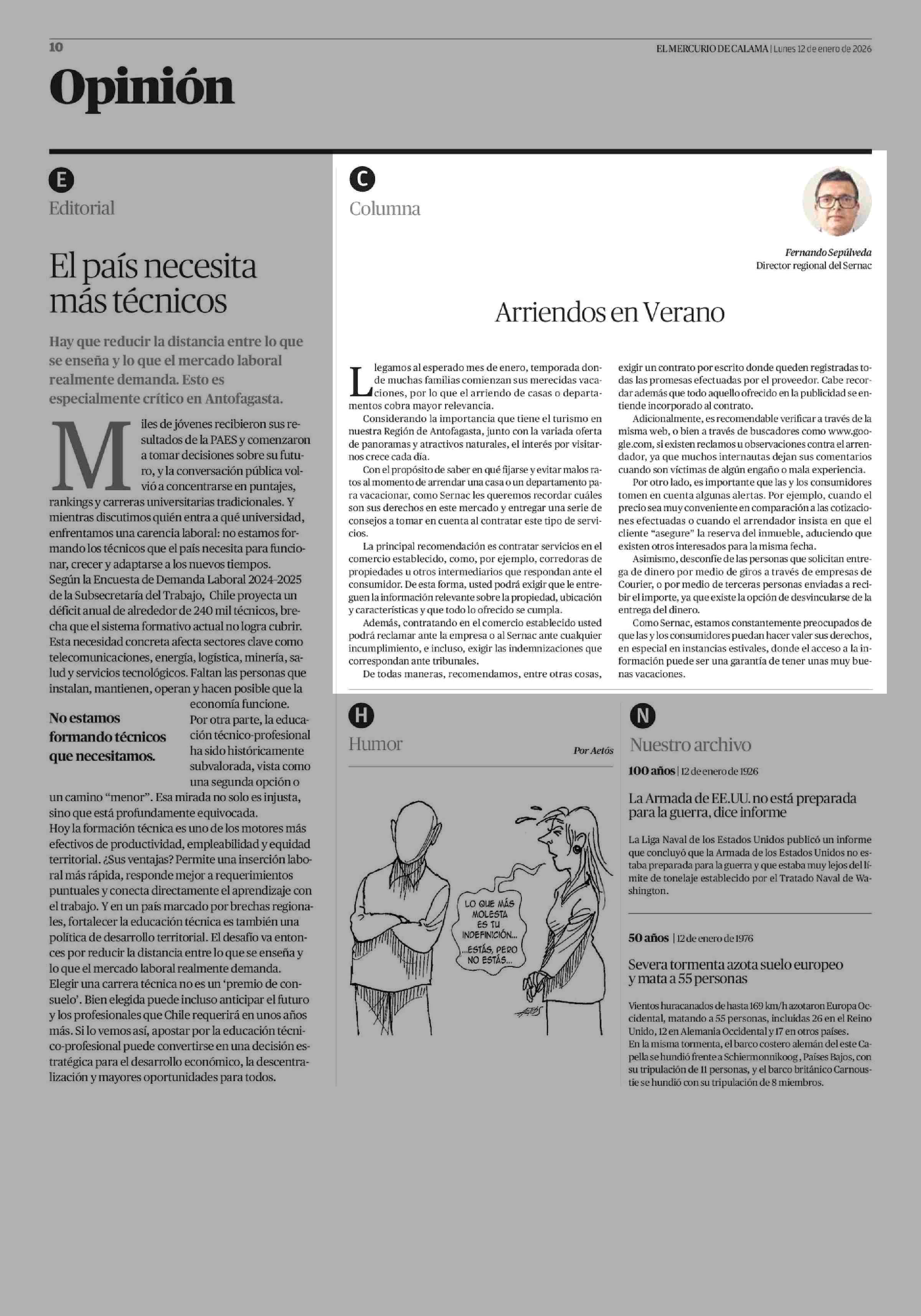 Fecha: 12-01-2026 Sector: Columnas de Opinión Región: Región de Antofagasta