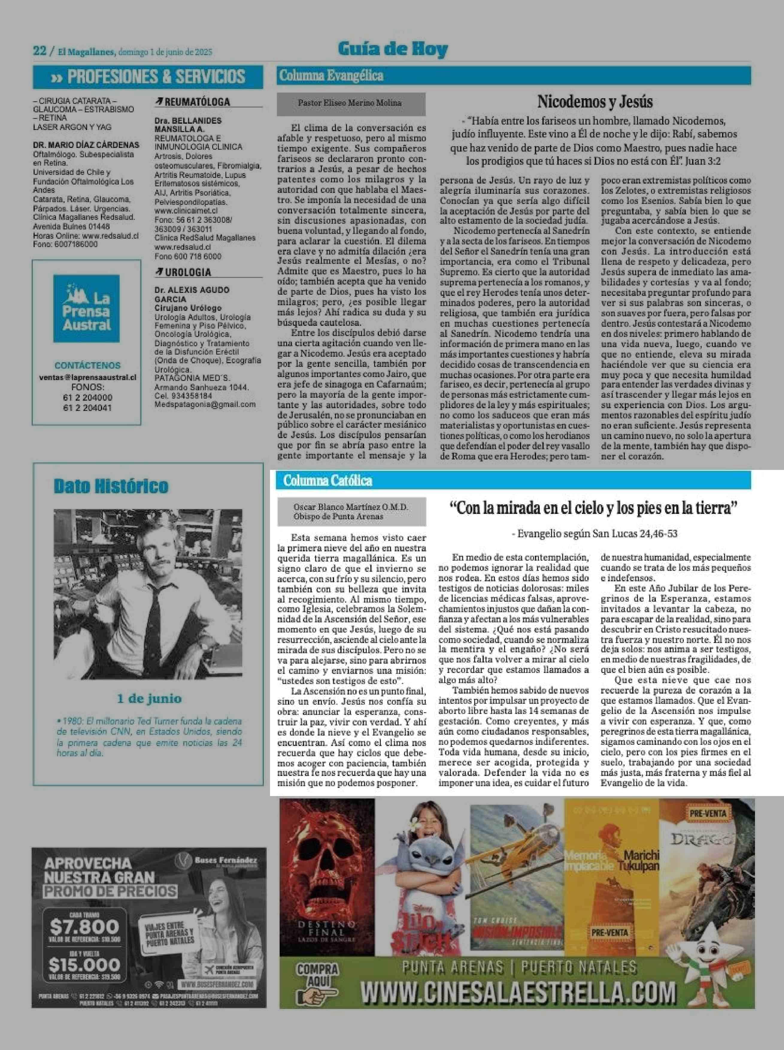 COLUMNAS DE OPINIÓN: “Con la mirada en el cielo y los pies en la tierra” 01-06-2025 El Magallanes |