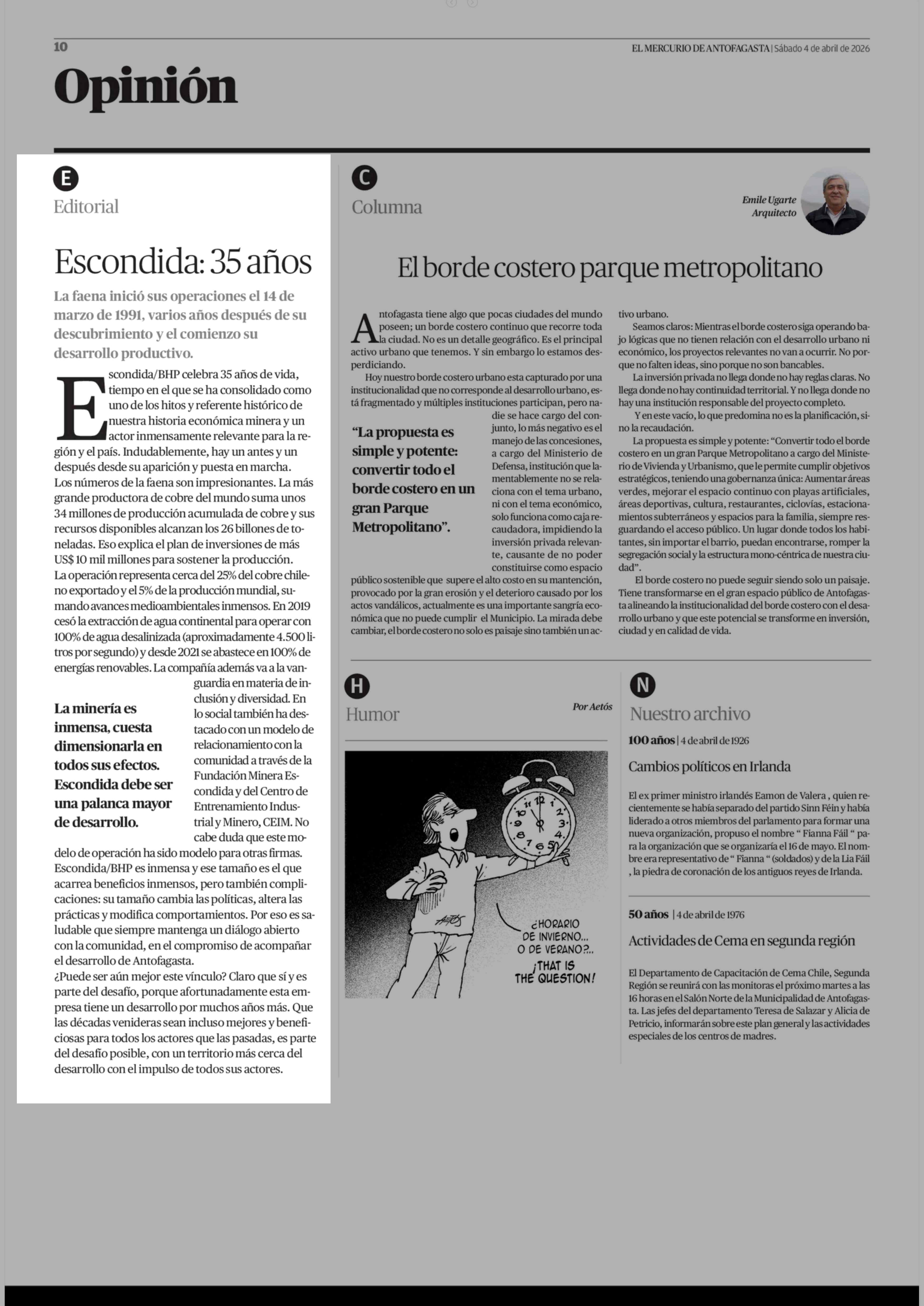 EDITORIAL: Escondida, 35 años 04-04-2026 El Mercurio de Antofagasta |