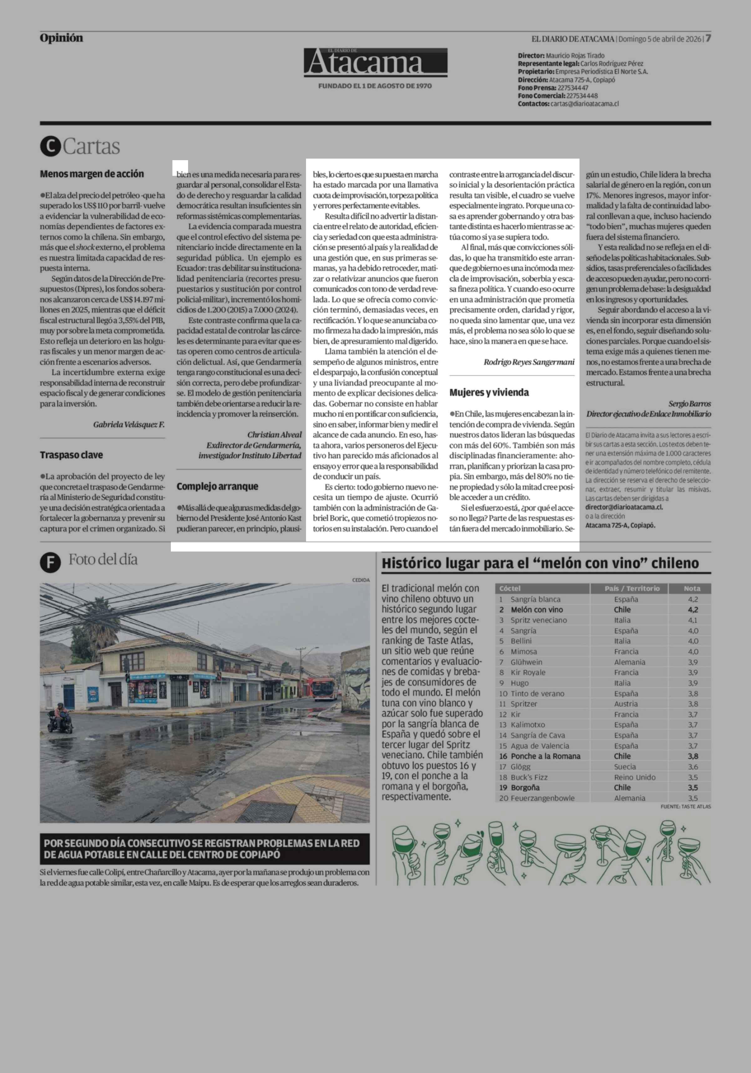 CARTAS: Complejo arranque 05-04-2026 El Diario de Atacama |