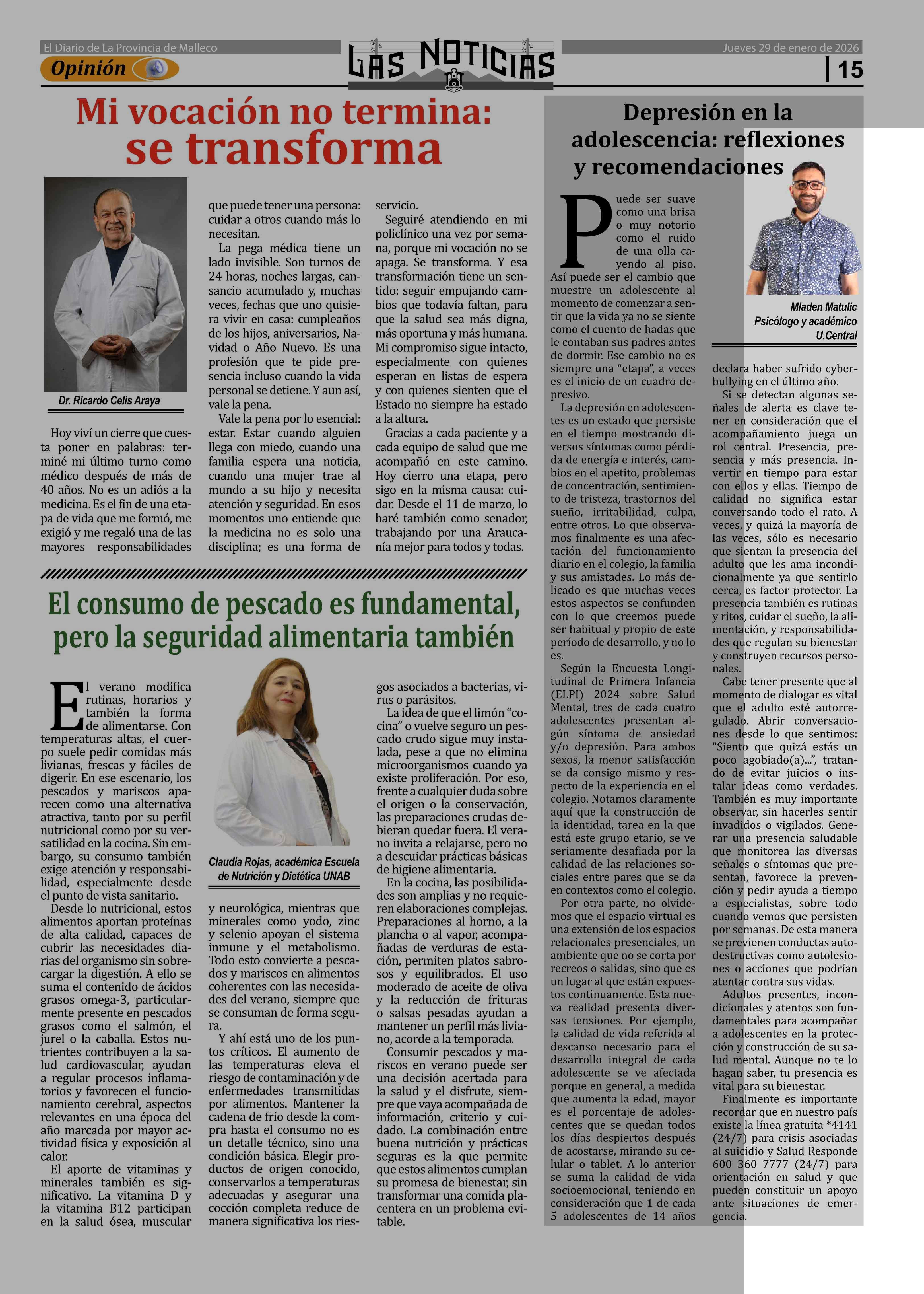 Columnas de Opinión: Depresión en la adolescencia: reflexiones y recomendaciones 29-01-2026 Las Noticias |