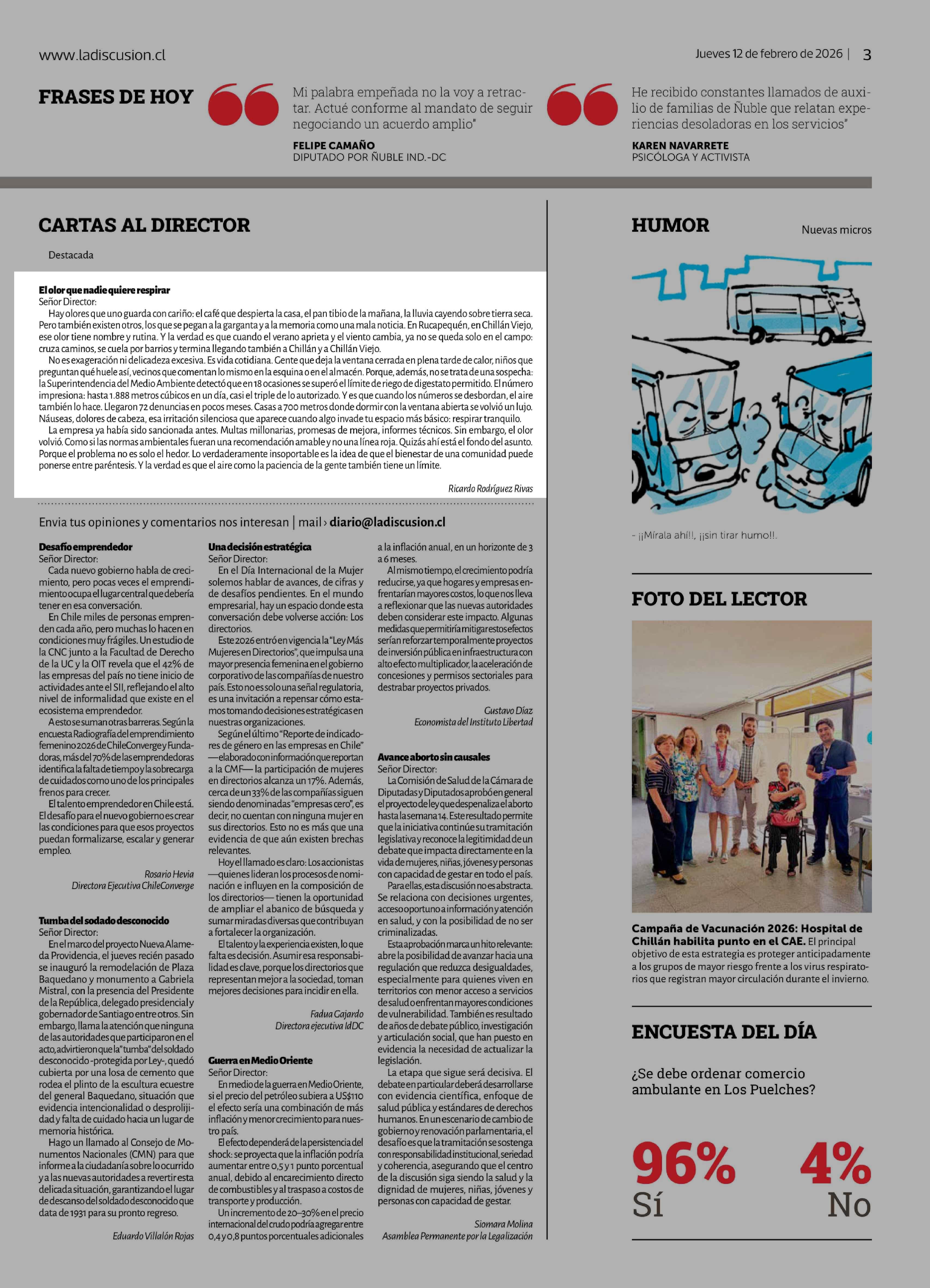 CARTAS: El olor que nadie quiere respirar 12-03-2026 La Discusión |
