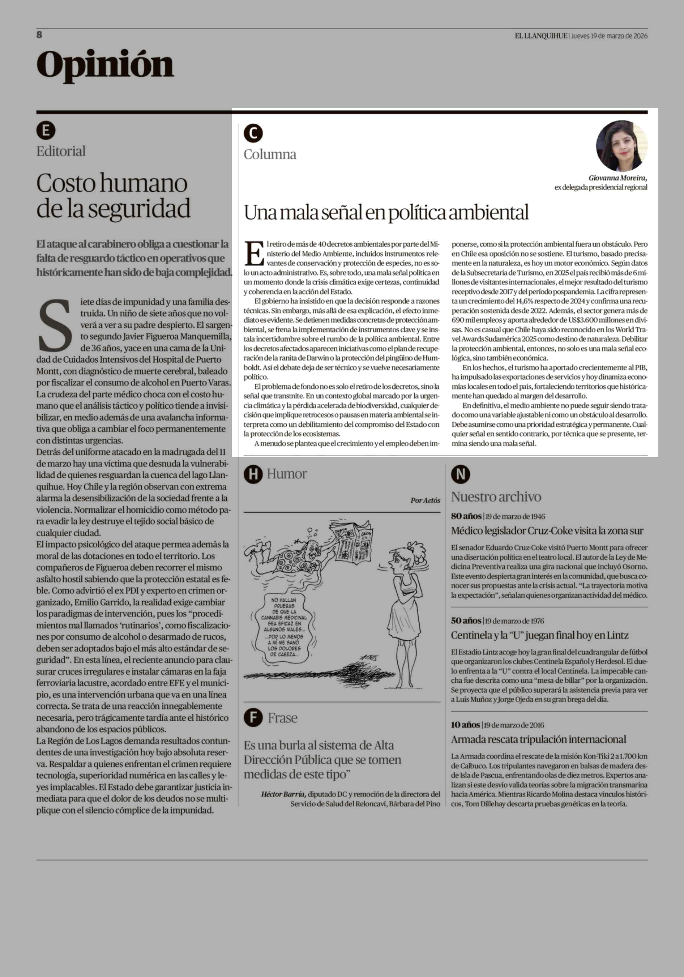 Fecha: 19-03-2026 Sector: Columnas de Opinión Región: Región de Los Lagos