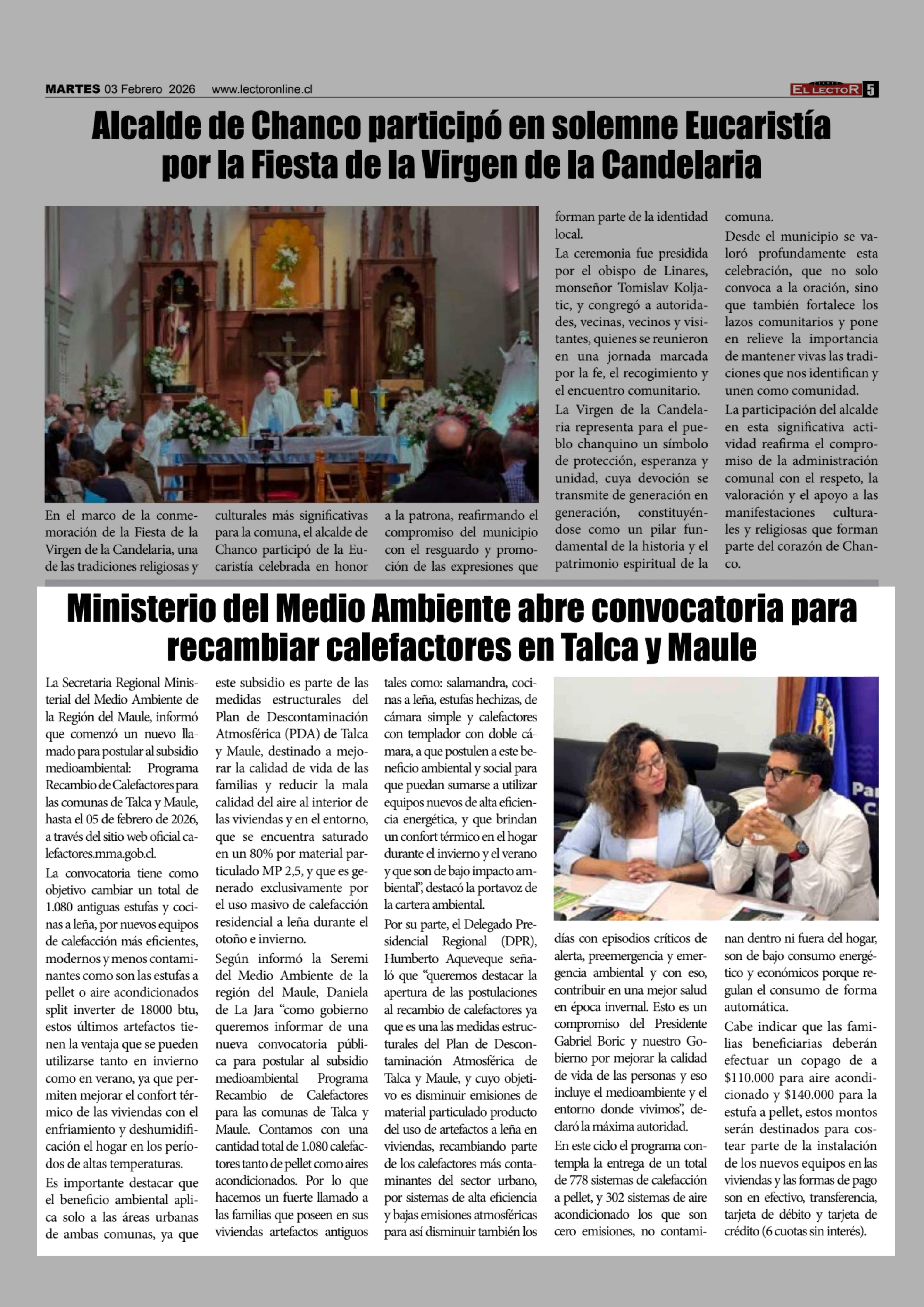 Ministerio del Medio Ambiente abre convocatoria para recambiar calefactores en Talca y Maule 03-02-2026 El Lector |