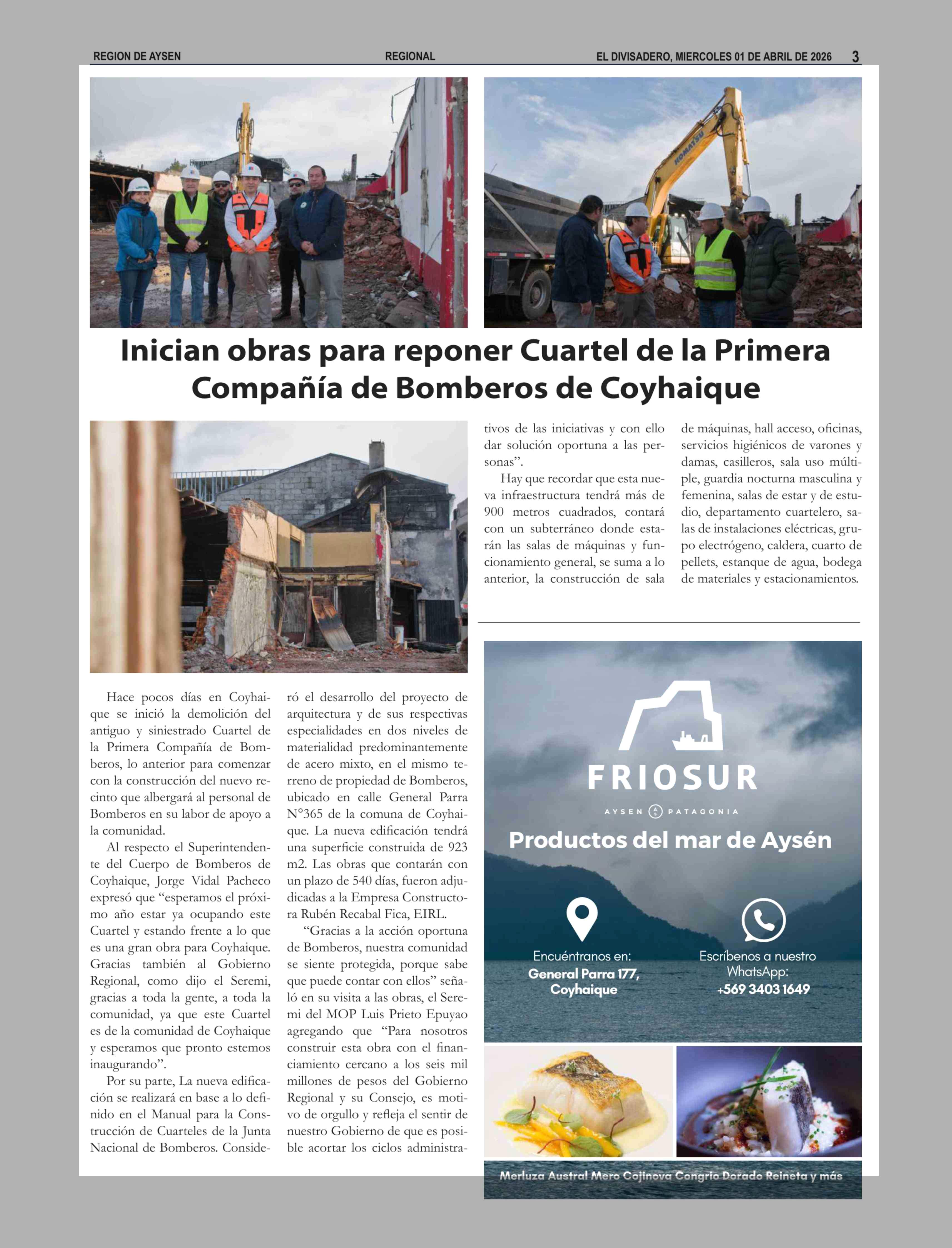 Inician obras para reponer Cuartel de la Primera Compañía de Bomberos de Coyhaique 01-04-2026 El Divisadero |