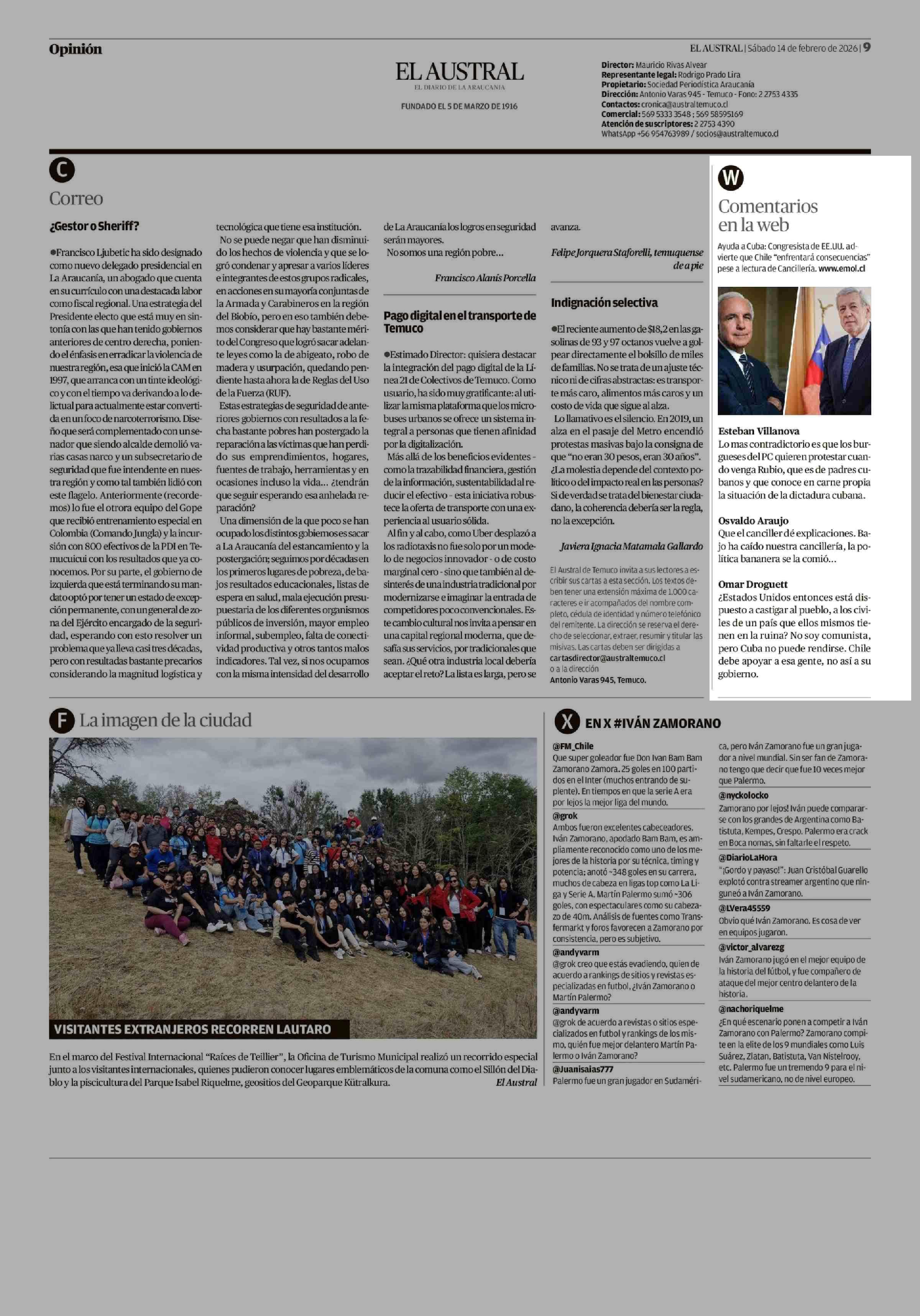 Comentarios en la web 14-02-2026 El Austral de la Araucanía |